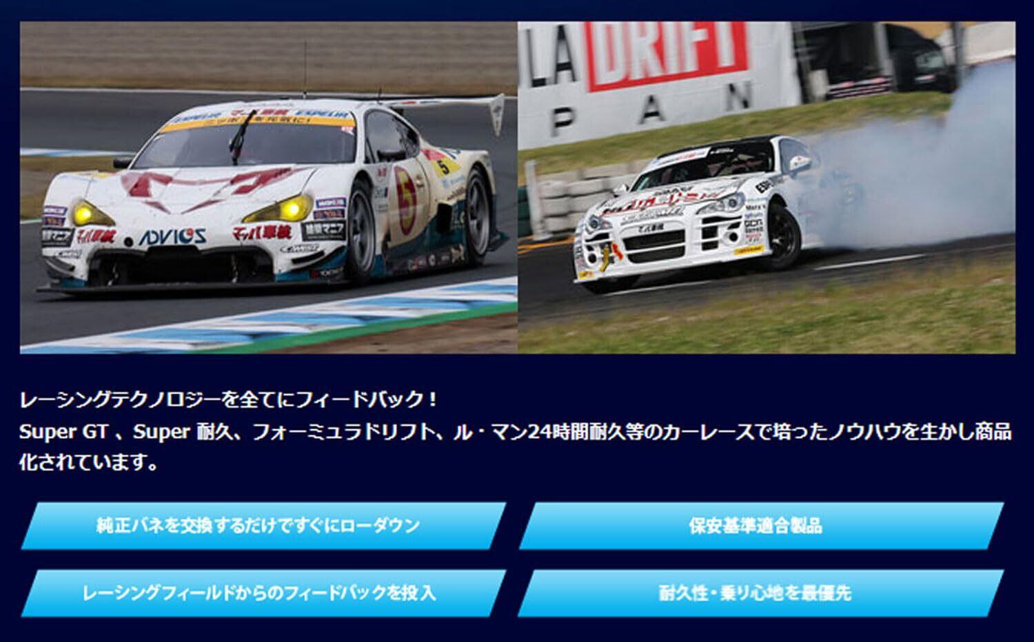 :■保安基準適合品のダウンサス。 ■乗り心地と耐久性を重視しています。 ■1台1台テストを重ね、ベストセッティングを追求。 ダウン量やストロークを最重要視し、反比例しがちなローダウンと乗り心地を両立できるように繰り替えしテストを行い開発しました。●ご購入の前に、車両型式、エンジン型式、駆動方式、年式、グレード等を車検証及びコーションプレート等でご確認いただき、メーカーホームページで車種適合に誤りがないか必ずご確認ください。※画像はサンプルです。取り付け車種等により商品の形状は異なります。