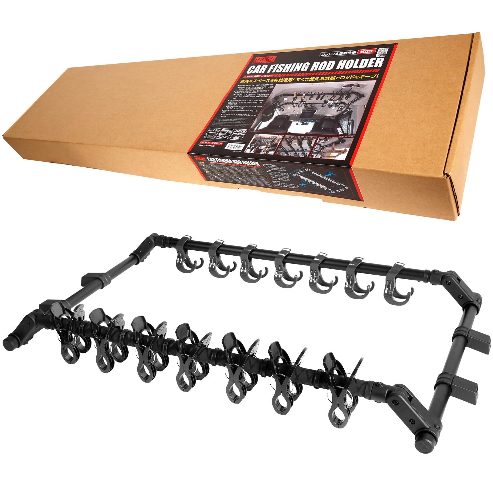 ドレス(DRESS) 車載 ロッドホルダー セット 7本積載 釣り 車 竿 ロッド 調節可能 汎用 ブラックアルミフレーム 収納 天井 車内