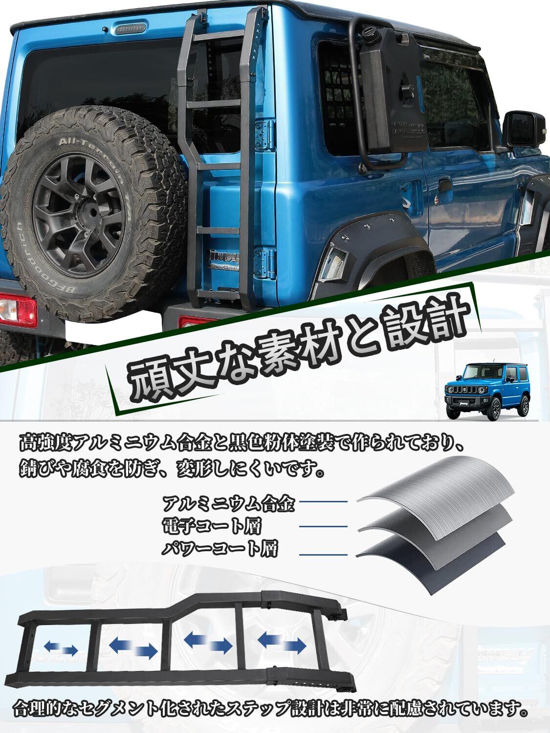 【安全で便利】鈴木ジムニーJB 64/74専用のリアドアテールラダー。屋根に荷物を置いたり、屋根を洗ったりしたい場合は、ジムニー専用のはしごは安全で便利です。キャンプ、アウトドア、レジャー愛好家にとって、ジムニーリアラダーは車の屋根に簡単に到着し、より快適なアウトドア生活を体験することができます。