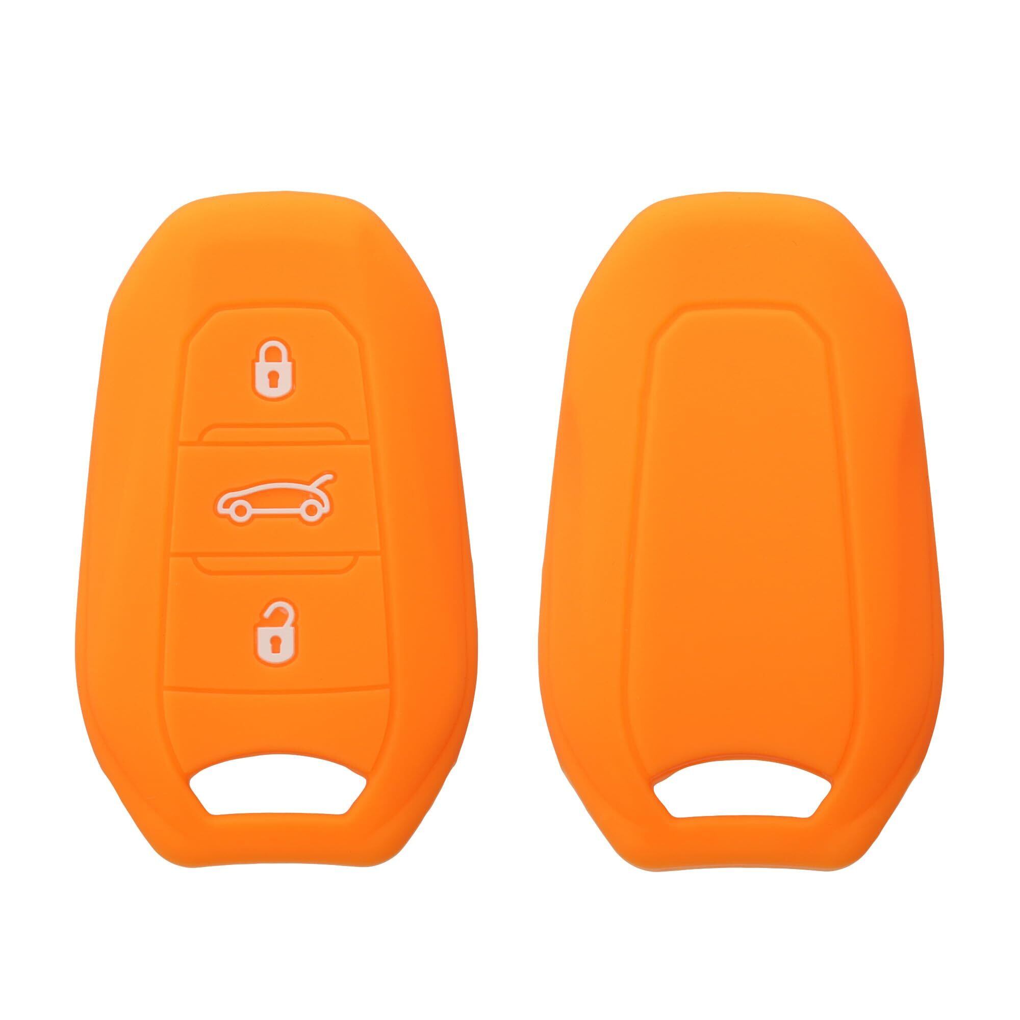 kwmobile Peugeot Citroen 3-ボタン 車のキー Smartkey (Keyless Go 対応機種のみ) 対応 ケース - シリコン キーケース 落下防止 車鍵 - 鍵ケース フルーティー オレンジ