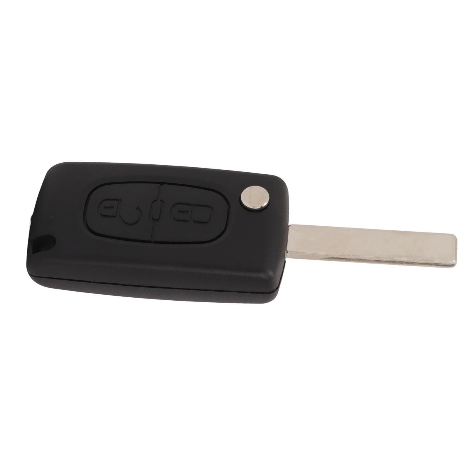 フリップリモートキーケース、快適なタッチキーフォブケース耐摩耗性ポータブルブラック2ボタン107 207 307 307cc 308 SW用 (マイナスブレード CE0536‑)