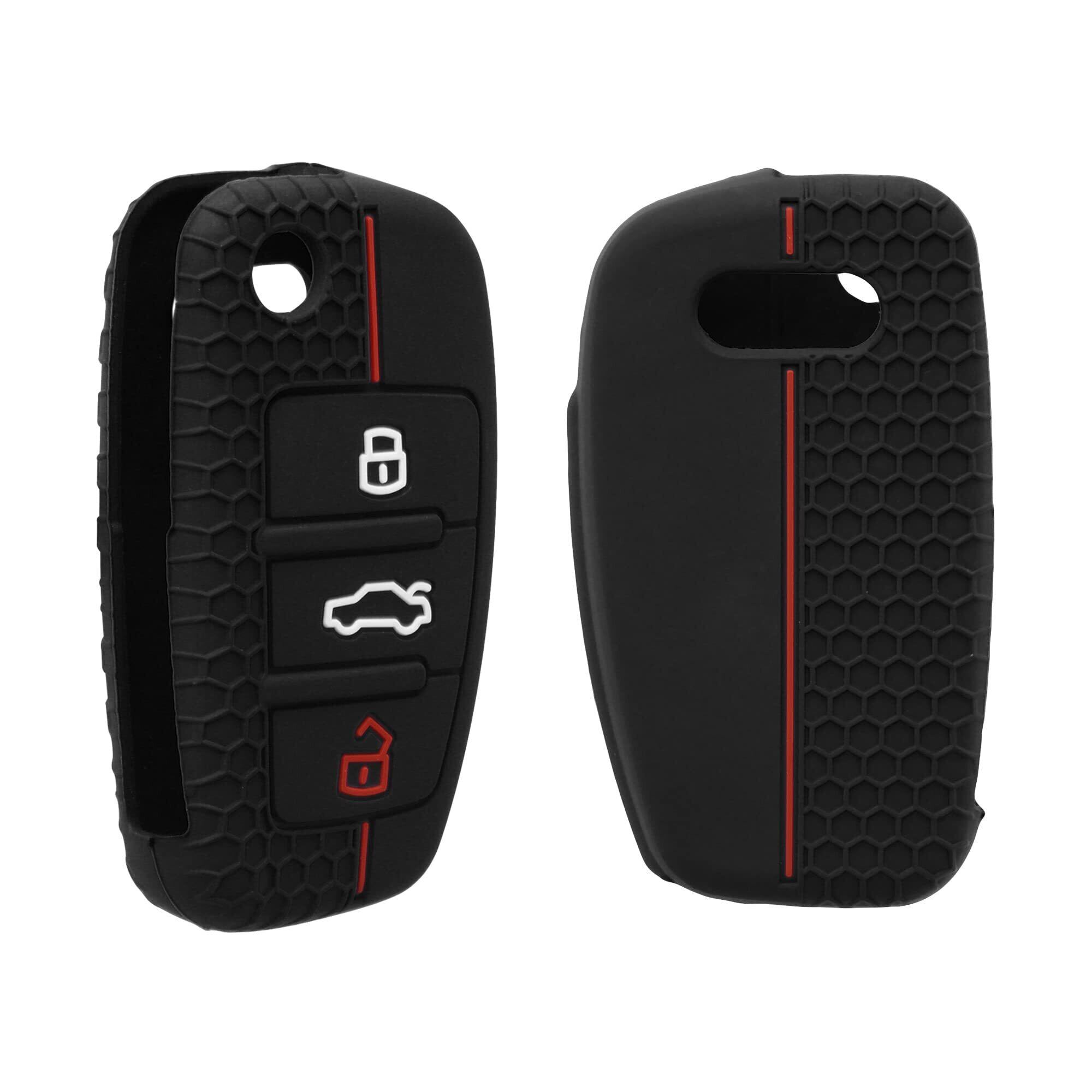 kwmobile キーカバー アウディ 3-ボタン 折りたたみキー対応 キーケース - 保護ケース 鍵ケース 車鍵 シリコン 黒色/赤色