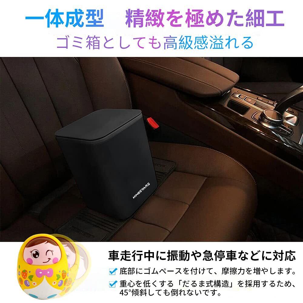 【だるま式構造、倒れにくい】車走行中に振動や急停車などで、ゴミ箱はよく転倒します。車内環境の実使用の諸要素を考慮して、弊店が開発した車載ゴミ箱です。底部にゴムペースを付けて、摩擦力を増やします。また、重心を低くする「だるま式構造」が採られるため、45°傾斜しても倒れないです。車内で安心して使えます。