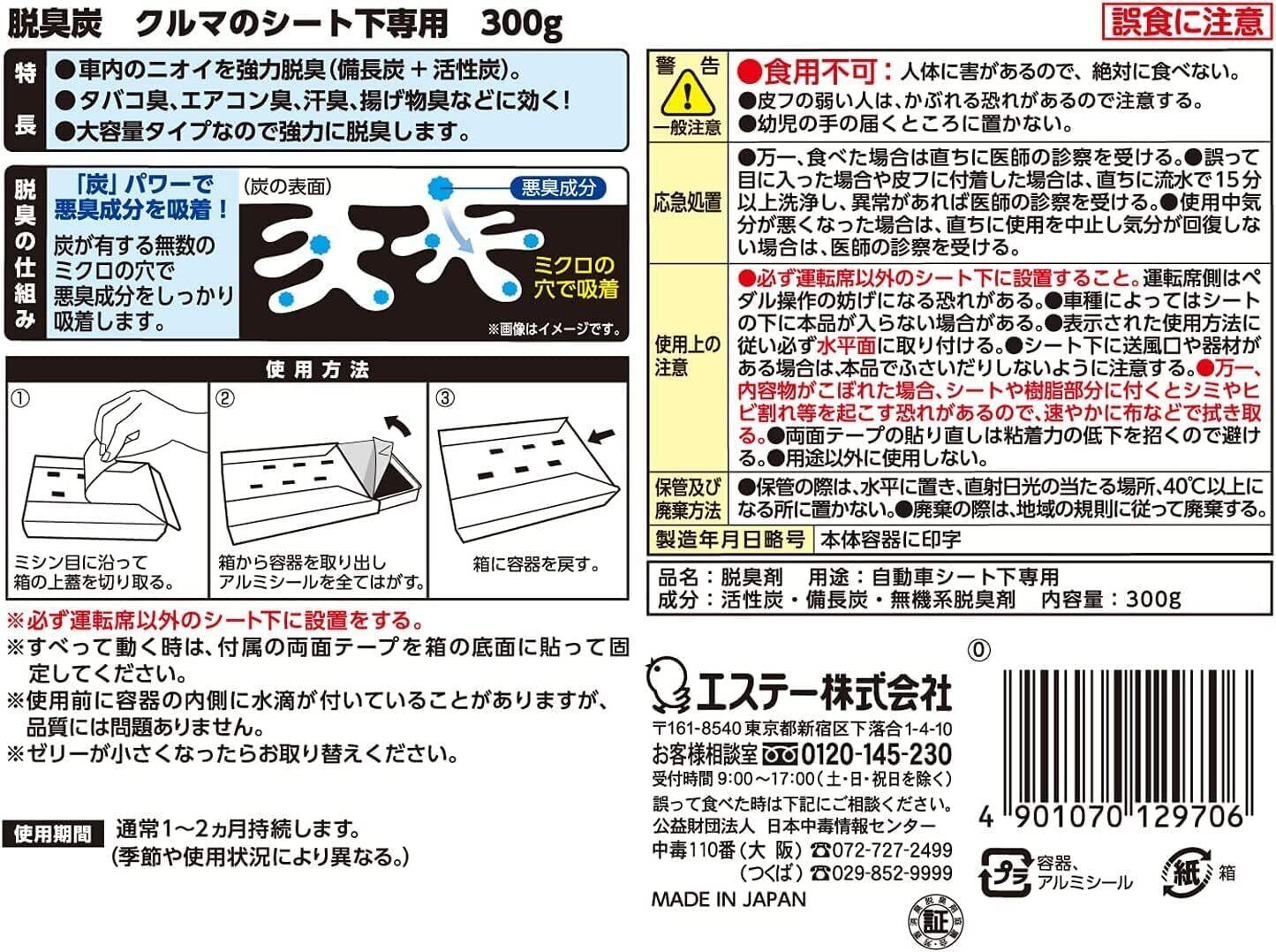 脱臭炭 クルマ [まとめ買い] 車用 シート下専用 大容量タイプ 300g×2個 (シート下 に置くだけ) 車 シート下 消臭剤 消臭 芳香剤