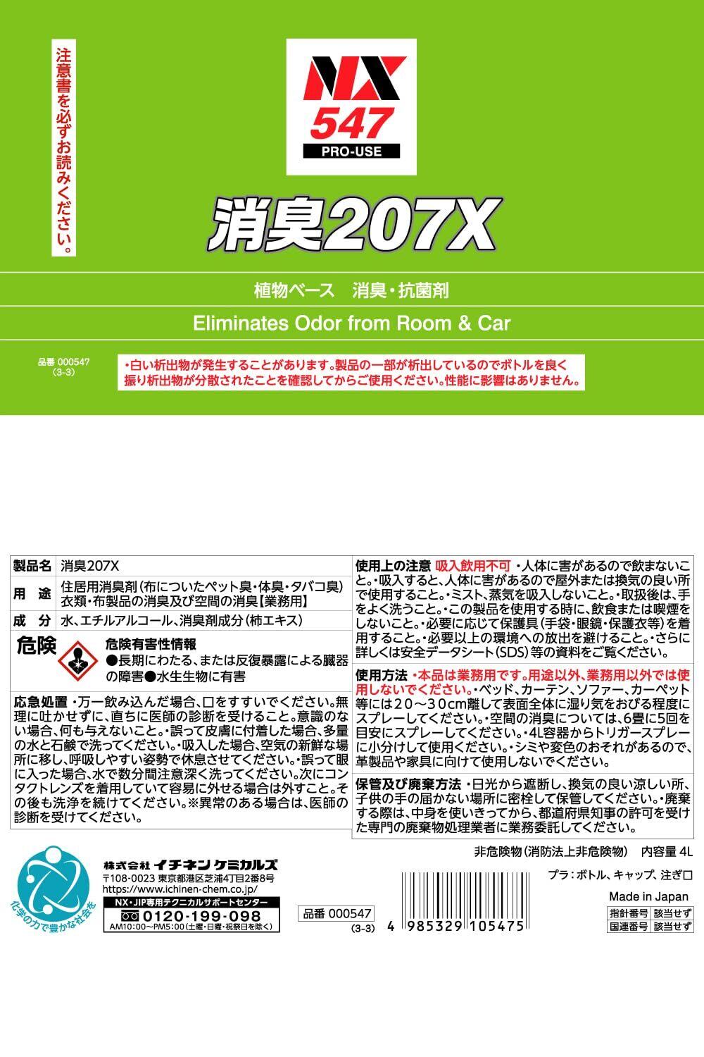 イチネンケミカルズ(Ichinen Chemicals) 車用 消臭剤 消臭207X 4L NX547 消臭剤