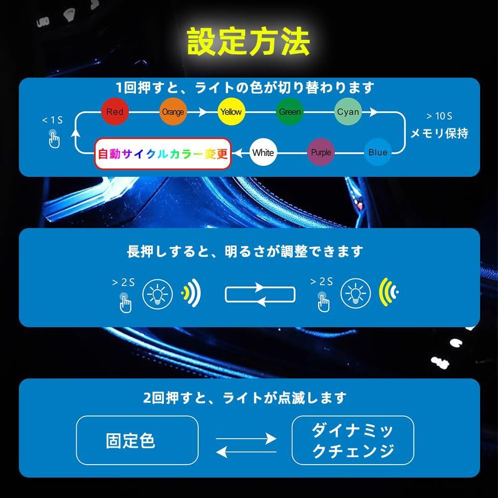 Renjzle 車内ライト USB LED 8色調光 アンビエントライト 180°回転可能 自動点灯 メモリー機能 簡単取付 車アクセサリー USB給電 小型 軽量 RGBイルミネーション (TPYE-C)