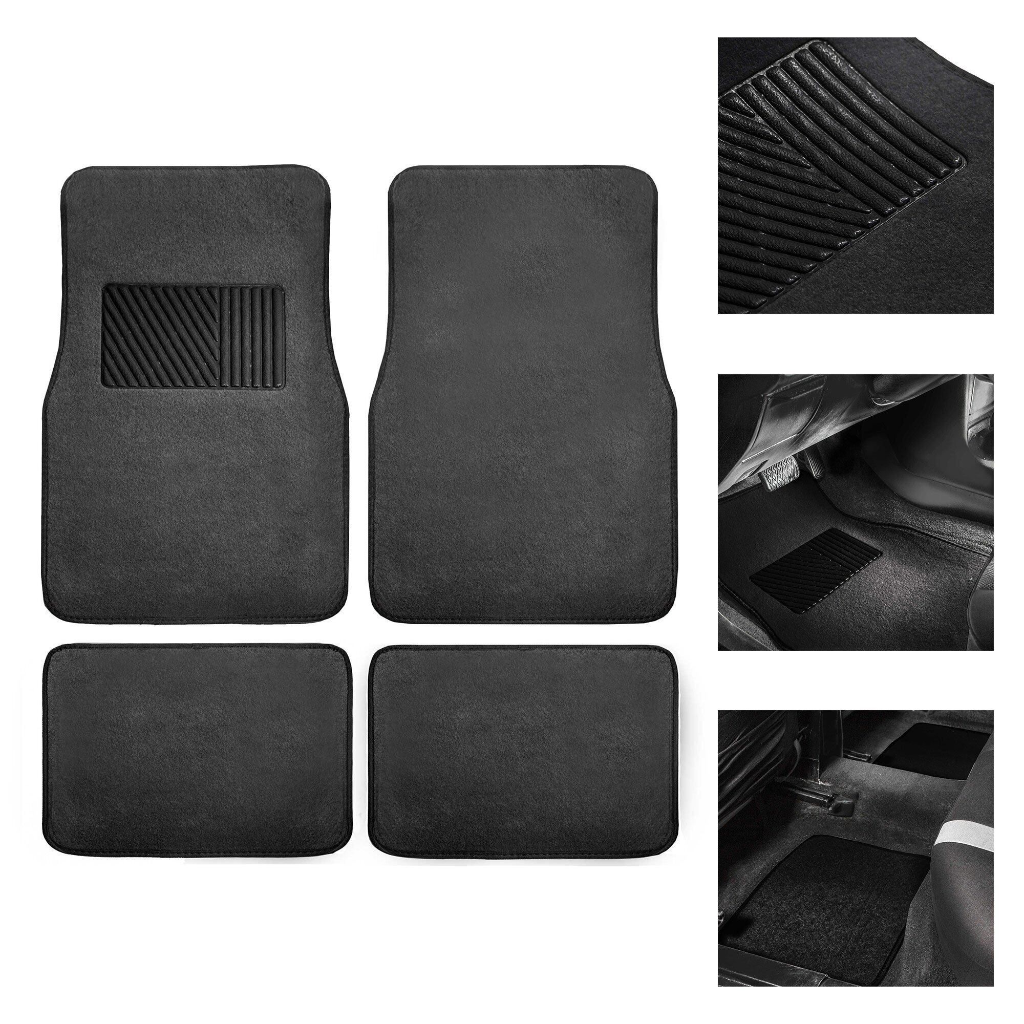 FHグループ(FH Group International) 車用フロアマット 4点セット デラックス ブラック フロント66×43cm リア32×43cm ドライバー ヒールパッド付き 【日本正規輸入品】 F14403BLACK