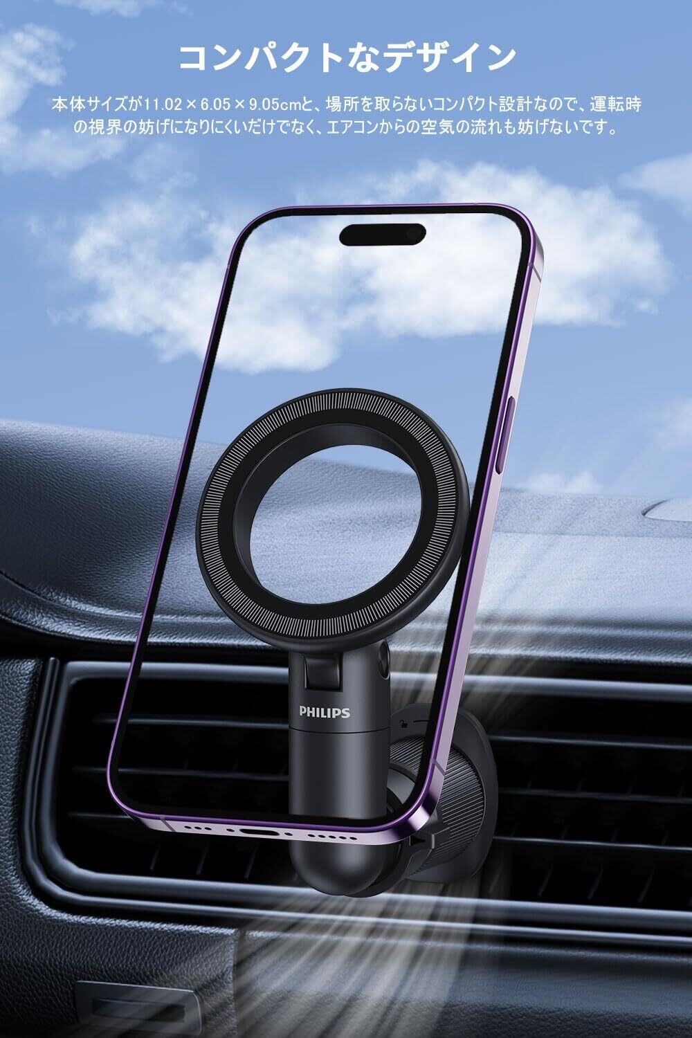 Philips (フィリップス) 車載スマホホルダー マグネット エアコン 吹き出し口 金属フック magsafeホルダー 超強磁力 瞬間吸着 360°回転可能 マグセーフ携帯ホルダー 片手操作 コンパクト設計 車用ホルダー カー用品 ほとんどの車種/機種対応 DLK4231B