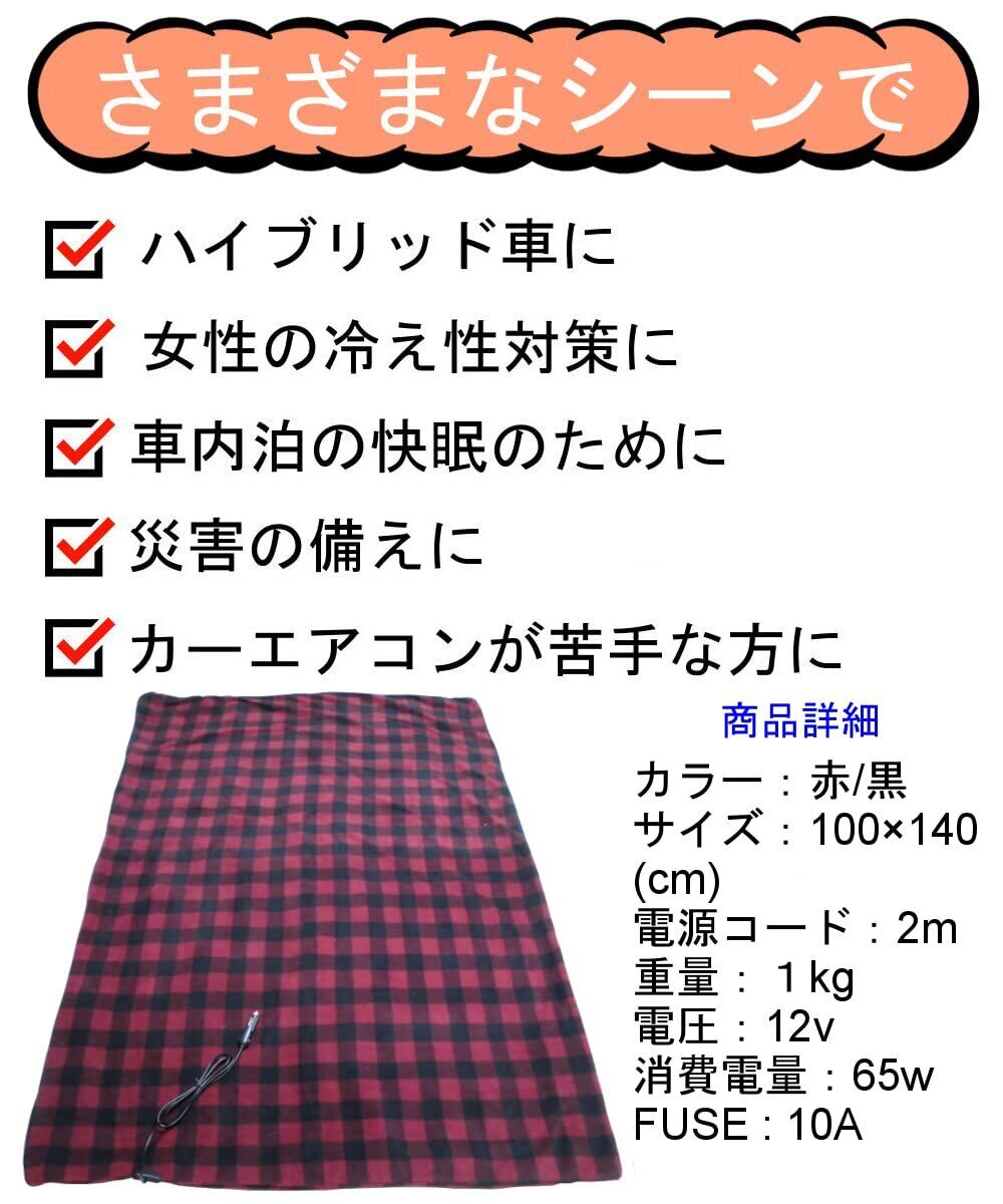 【オートパーツセンター】電気毛布 車用 車中泊 毛布 大(150cm×110cm) 防寒保温 シガーソケット12V用 (レッド ブラック) (赤黒) 温度調整なし