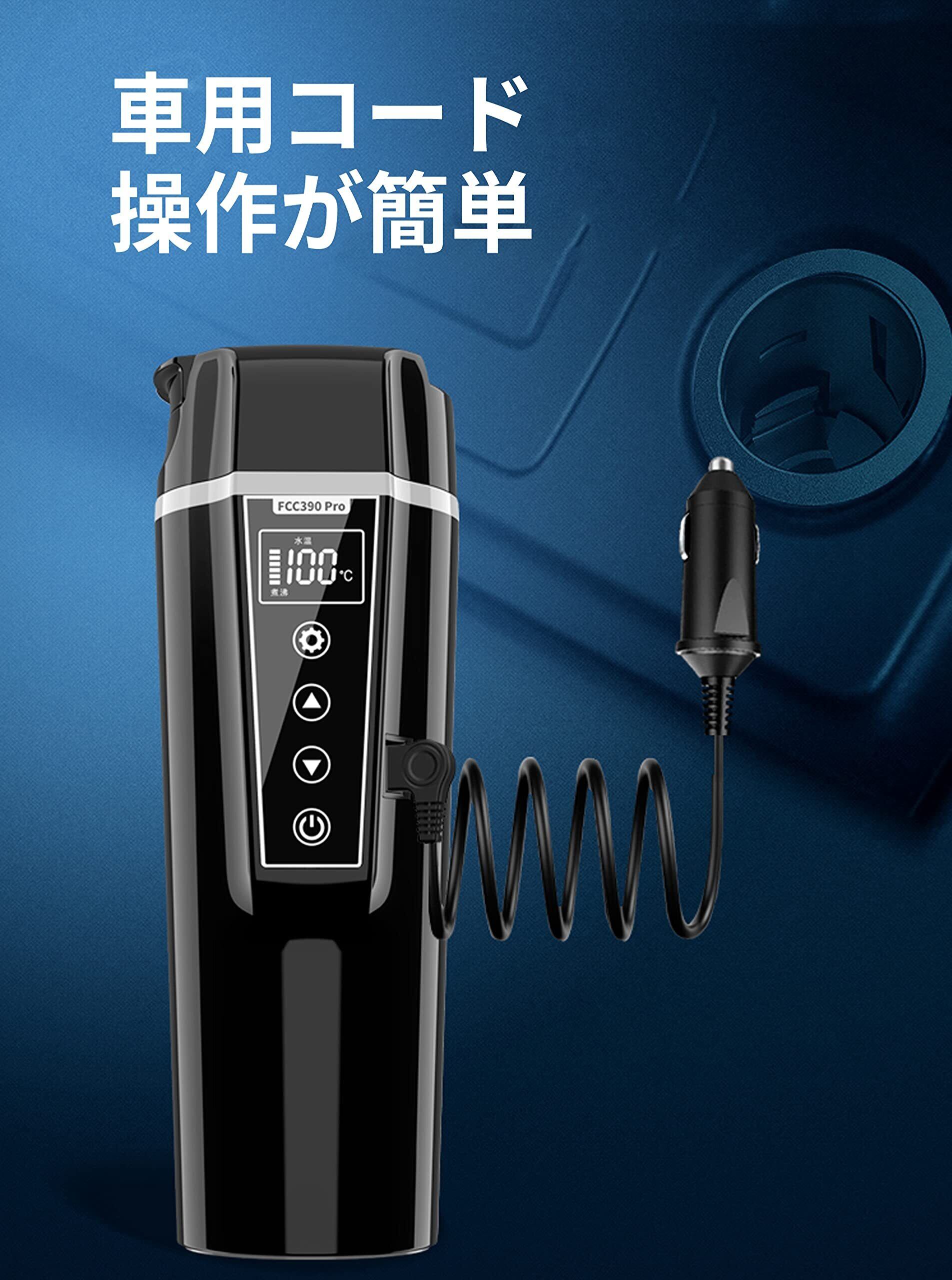 Simble 車載電気ケトル 450ml 大容量 カー用&トラック用 DC12V/24V 加熱 保温 湯沸し器 湯ボルト 電気ポット 車中泊 LCDディスプ 日本語説明書付く