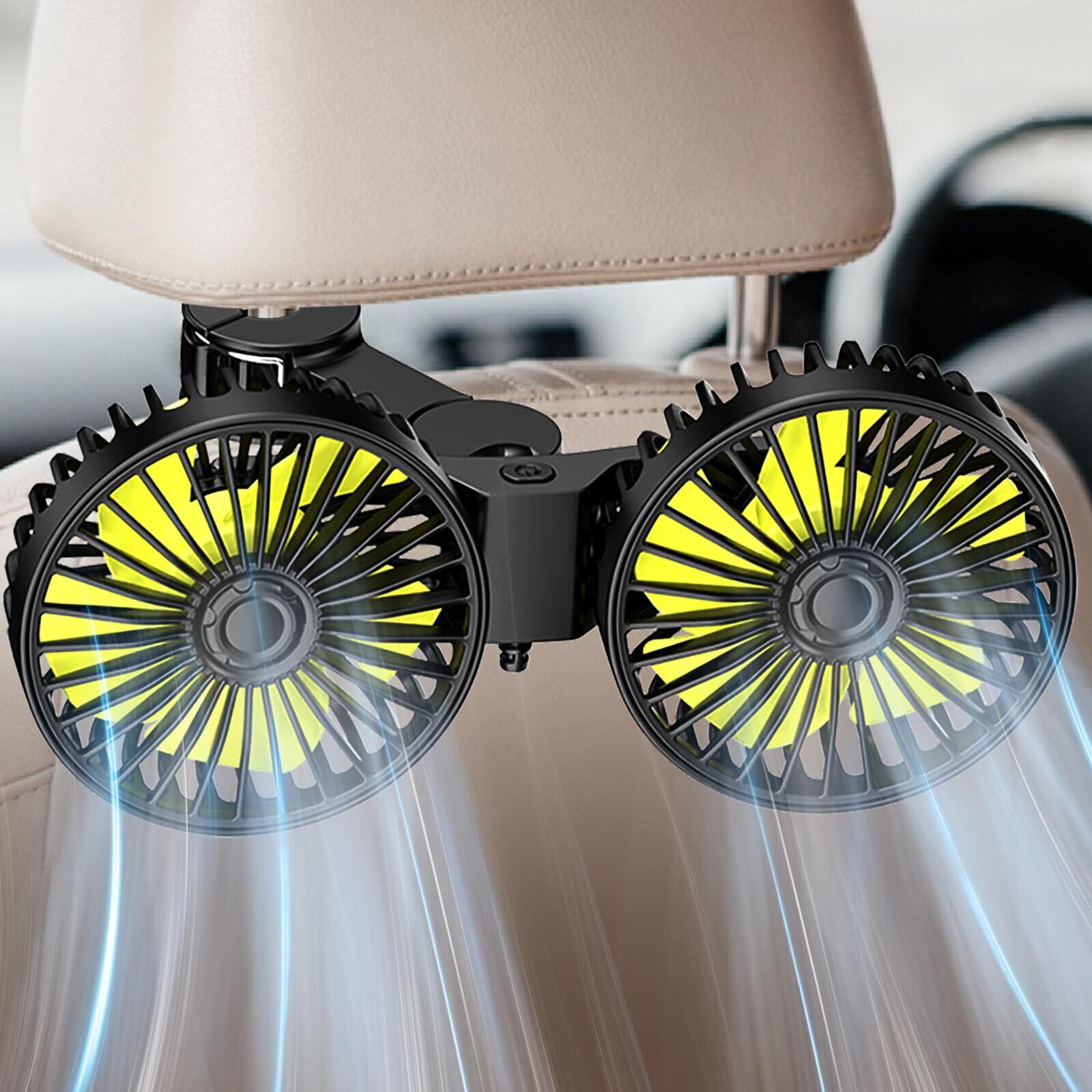 【2024年新登場】Dealswin 車 扇風機 車載扇風機 車用扇風機 双頭車載ファン ツーファンタイプ USB給電 3段階風量 低騒音 360°角度調整可能 ヘッドレストファン 後部座席に送風 空気循環 DC車用 取付簡単 長配線 クリップ付き 夏対策 熱中症対策 配線延長バージョン 取付簡単