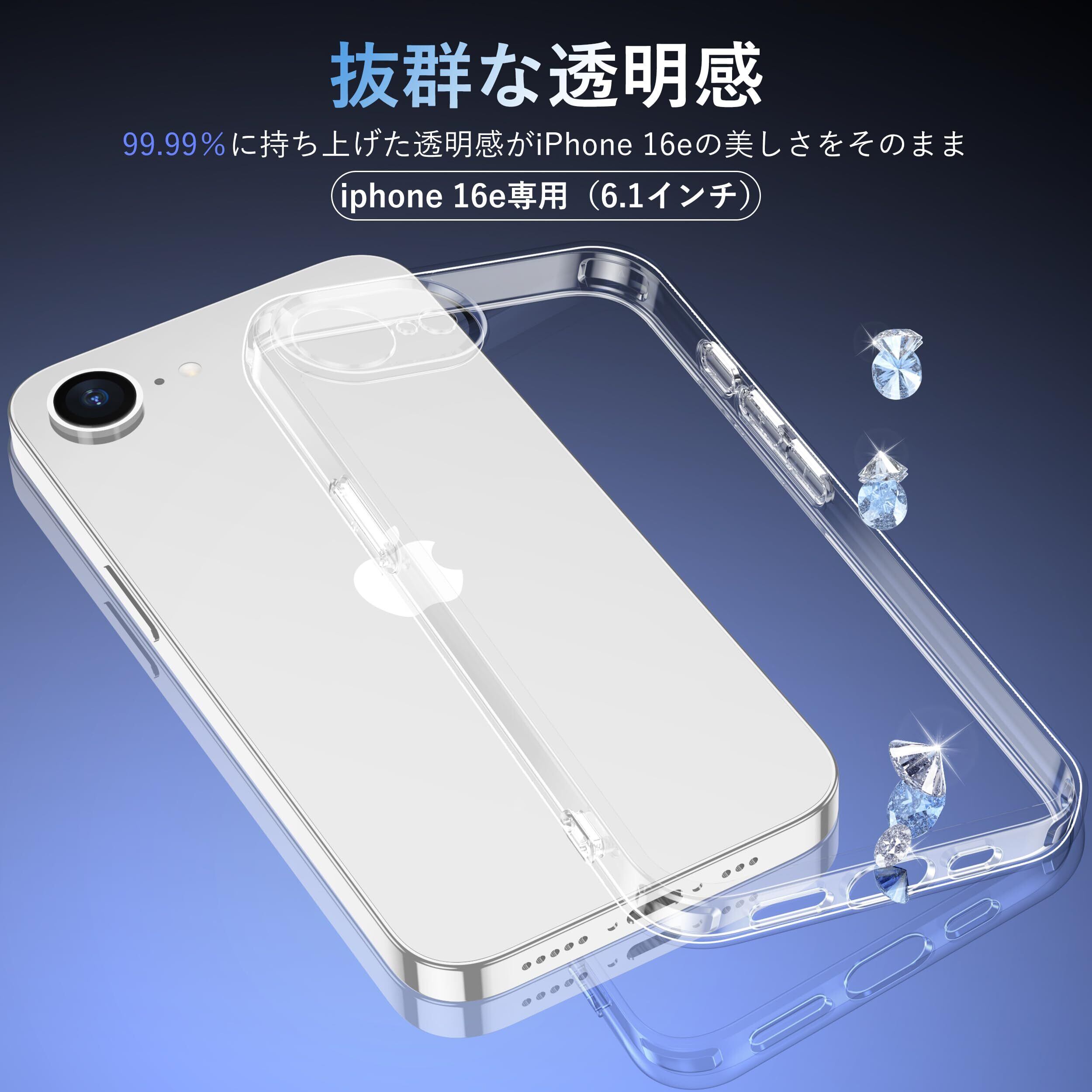 【高い透明度・黄変に強い】99.99%に持ち上げた透明感がiPhone 16Eの美しさをそのまま。厳選した高透明度、更に耐黄変に強い特殊なポリカーボネート素材を採用、指紋がつきにくい・黄ばんでなく正真正銘のクリア!いPhone16eのリアルな色と高級感を損なわなく、本来の美しさを楽しむことができます。