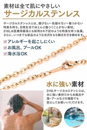 材質:316L サージカルステンレス Napistのサージカルステンレス商品はSUS304、SUS316、SUS316Lをその商品の特性に合わせより良いコストパフォーマンスが得られるよう選んでおります。この商品はSUS316Lでございますので耐腐食性に優れ海水でもご使用いただけます。海水から上がった場合は真水で塩分を洗い流してください。温泉成分によっては変色等の可能性がございますのでご注意ください。