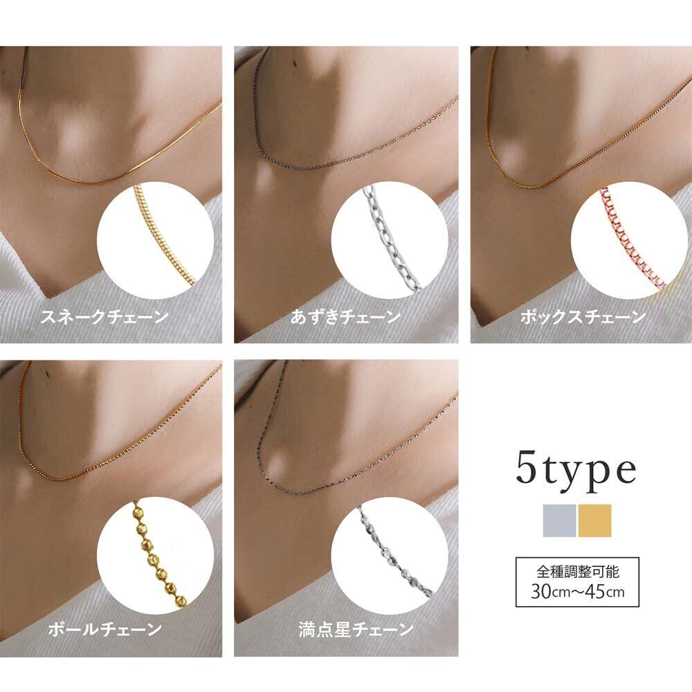 【バリエーション豊富】チェーンの種類がスネークチェーン、あずきチェーン、ボックスチェーン、ボールチェーン、満点星チェーンの5種類、カラーがシルバー、ゴールドの2色の計10種類からお選びいただけますので貴方のお気に入りがきっと見つかります。シンプルに着用したり、お手持ちのチャームなどと合わせてみたりとお好みのスタイルでお楽しみいただけます。 【長さが自由に調節可能なアジャスター付き】 アジャスターで長さを自由に調節可能(30cm、35cm、40cm、45cm)