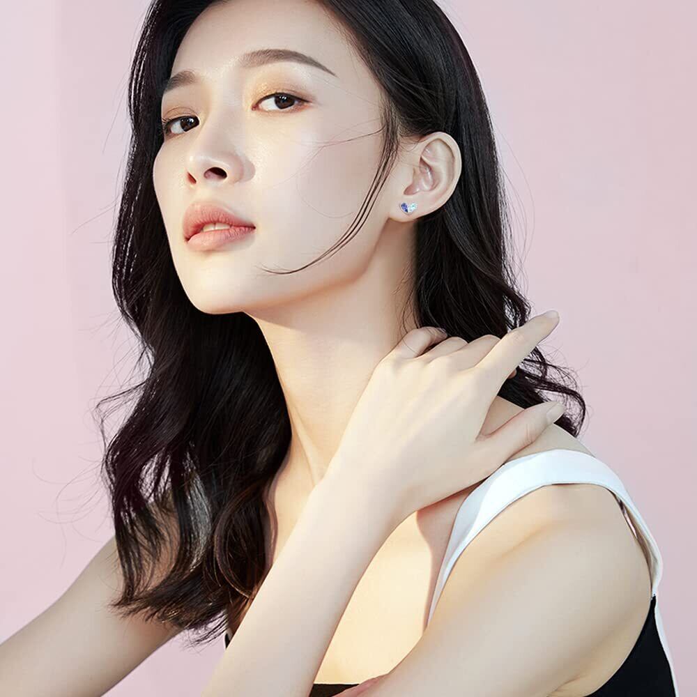 バイカラーデザイン:タンザナイトの自然の美しさとライトブルーのアクアマリンの涼しさを組み合わせたこのレディースピアスは、アレルギー防止のために2つの異なる色の石でデザインされています。ハートのピアスは、個性とセンスを表現するユニークな芸術作品です