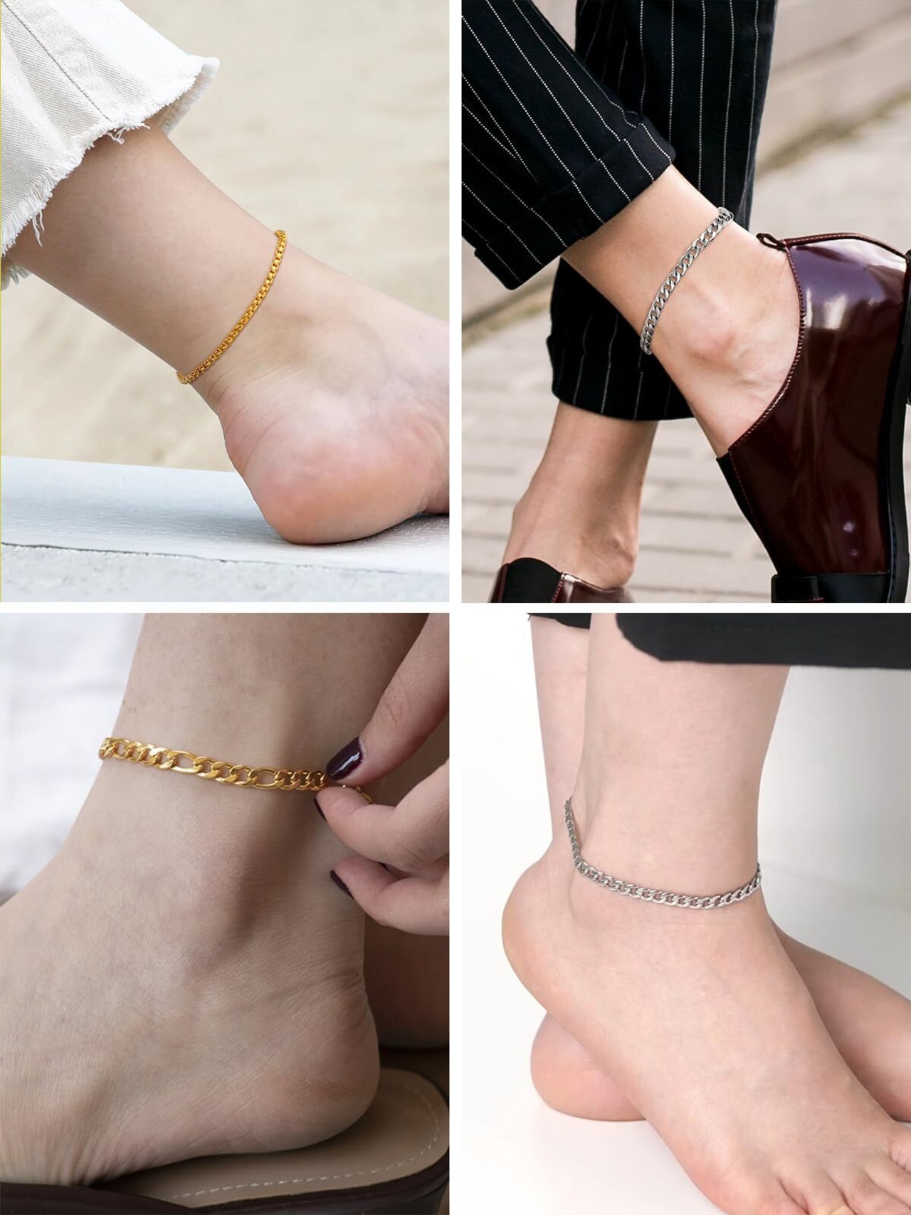 【定番なアンクレット】洗練されたシャープな印象を与えてくれたアンクレットで、パンプス、ハイヒール、ローカットスニーカーなど足首が見える履物に相性よく、普段使いから、パーティー、二次会、デートまで幅広く活躍します