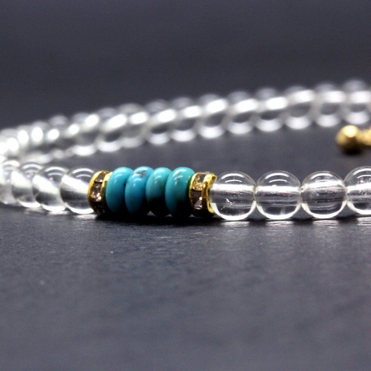 レディース素材:ターコイズ4mm 水晶4mm ゴールドロンデル