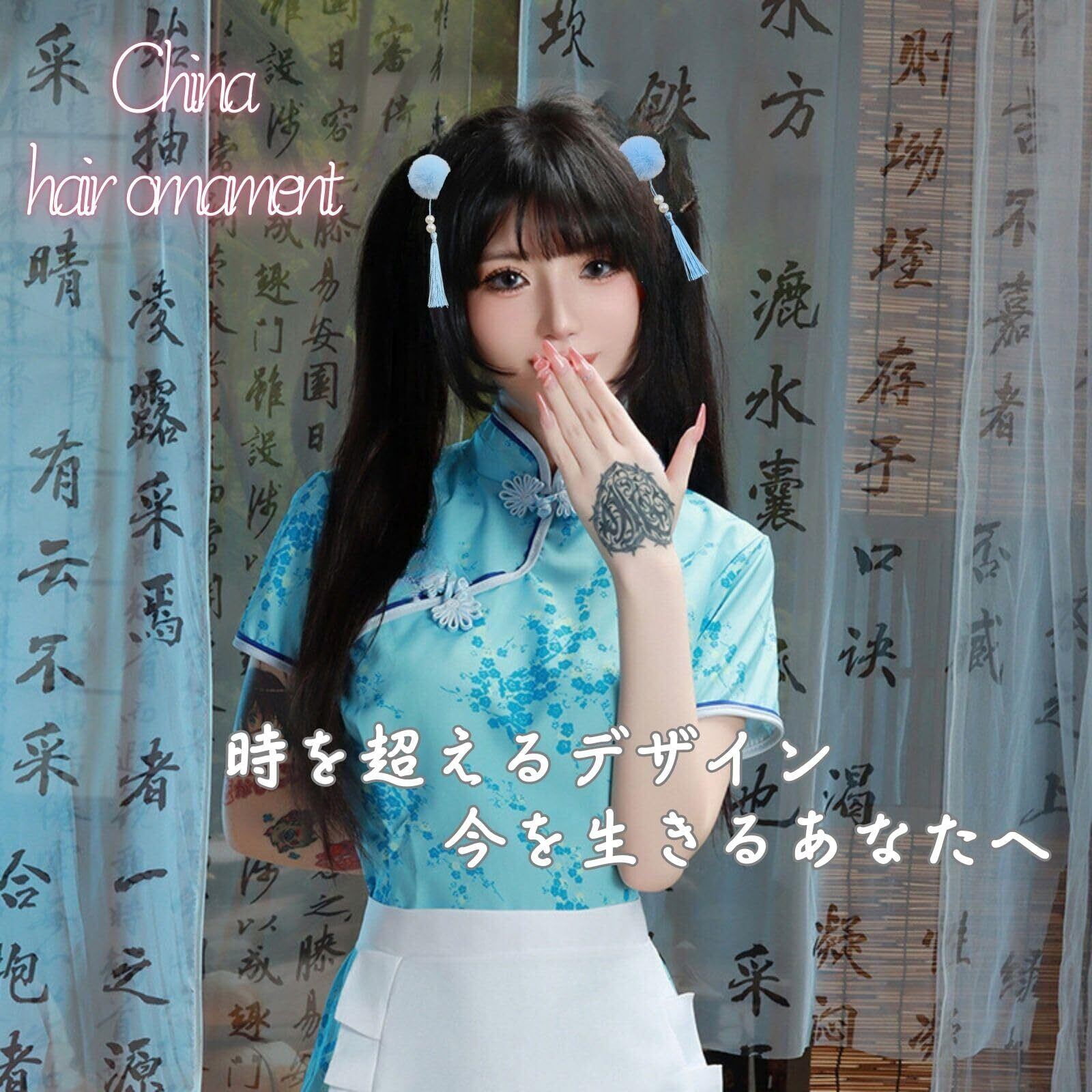 Parhumsin チャイナ 髪飾り お団子カバー チャイナ ヘアアクセ チャイナお団子 (水色)