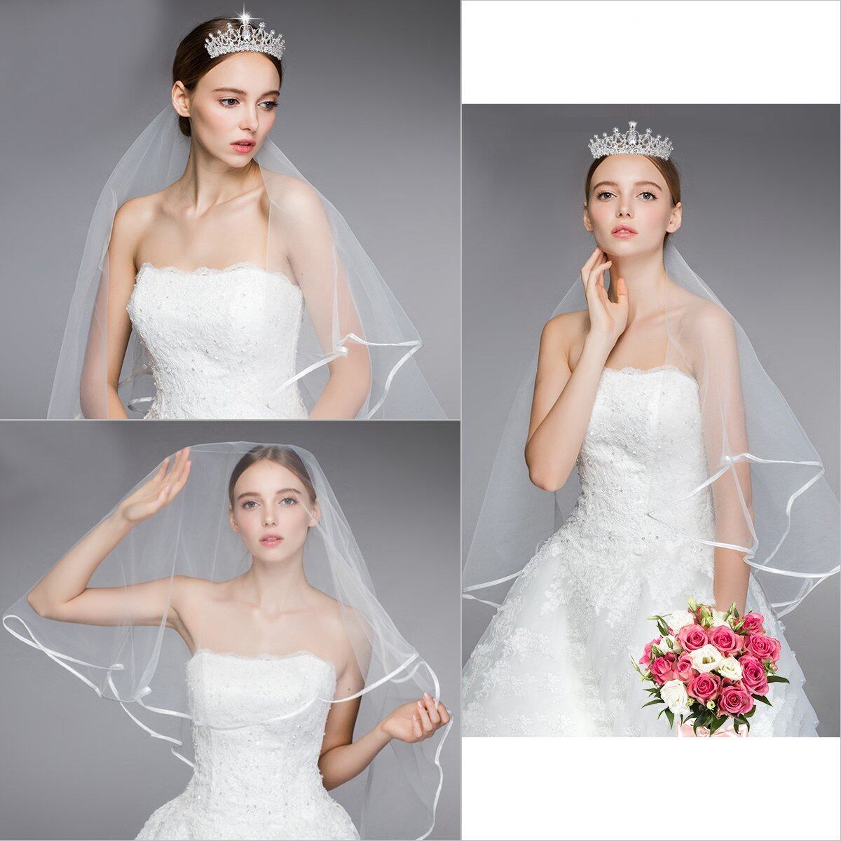 【花嫁ベール付】:綺麗なベールは優雅な印象を与えるようです。付属のコームでブライダルベールを脱落せずに簡単に固定できます。シンプルで完璧なブライダルヘッドドレスです。