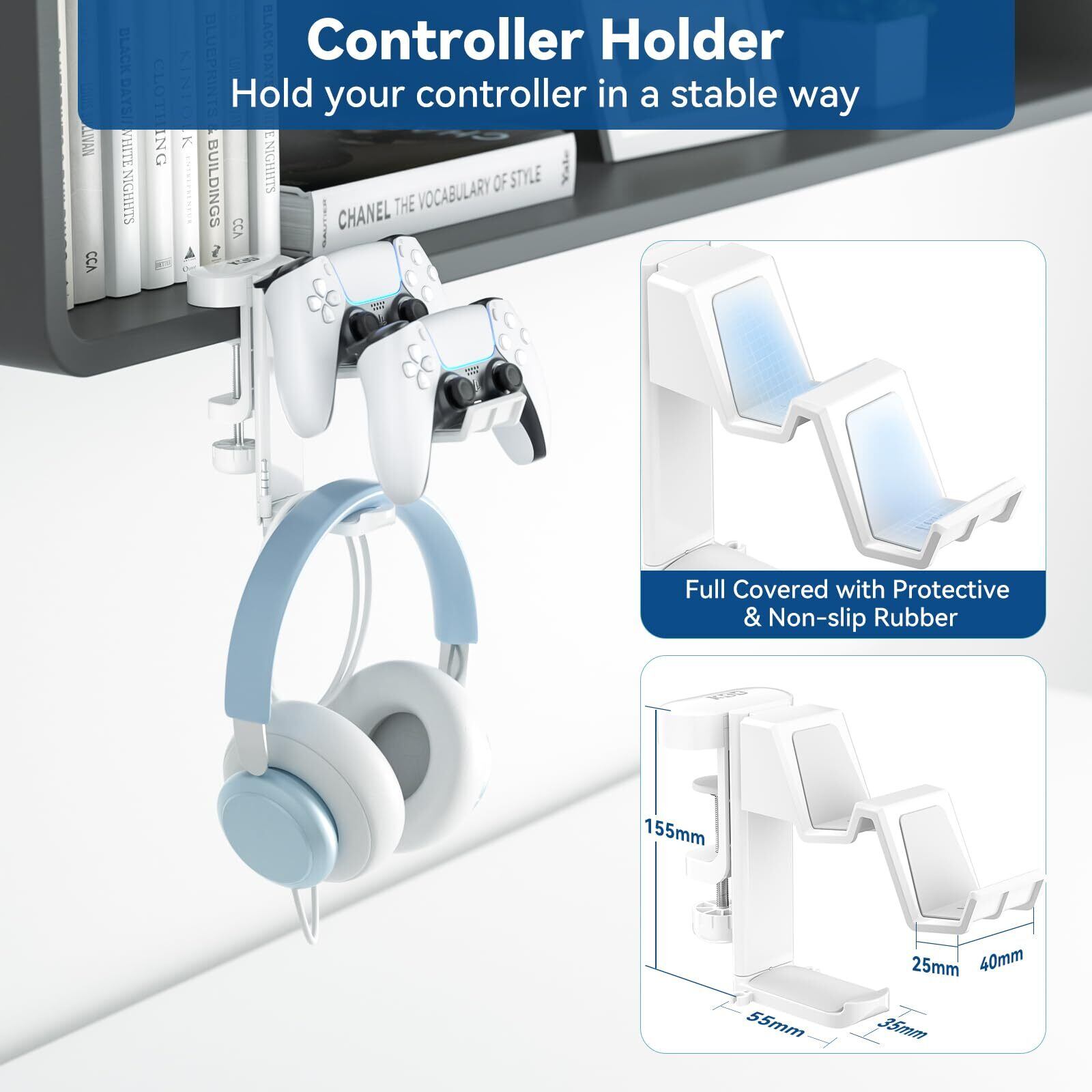 KDD 5 in 1デスクオーガナイザー—回転式ヘッドホンスタンド—取り外し可能なコントローラーホルダー—ペン立てとカップホルダー付き—卓上収納がカップ、スマホ、ペン、コントローラーとヘッドホンに適用。(白い)