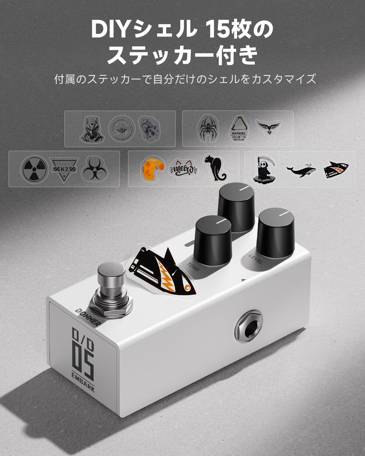 【DIYカスタマイズ可能な外装】附属のステッカーや他の装飾を使用して、自身のオリジナルデザインを施すことができます。自分だけのユニークなギターペダルを作り、創造力を発揮できます。