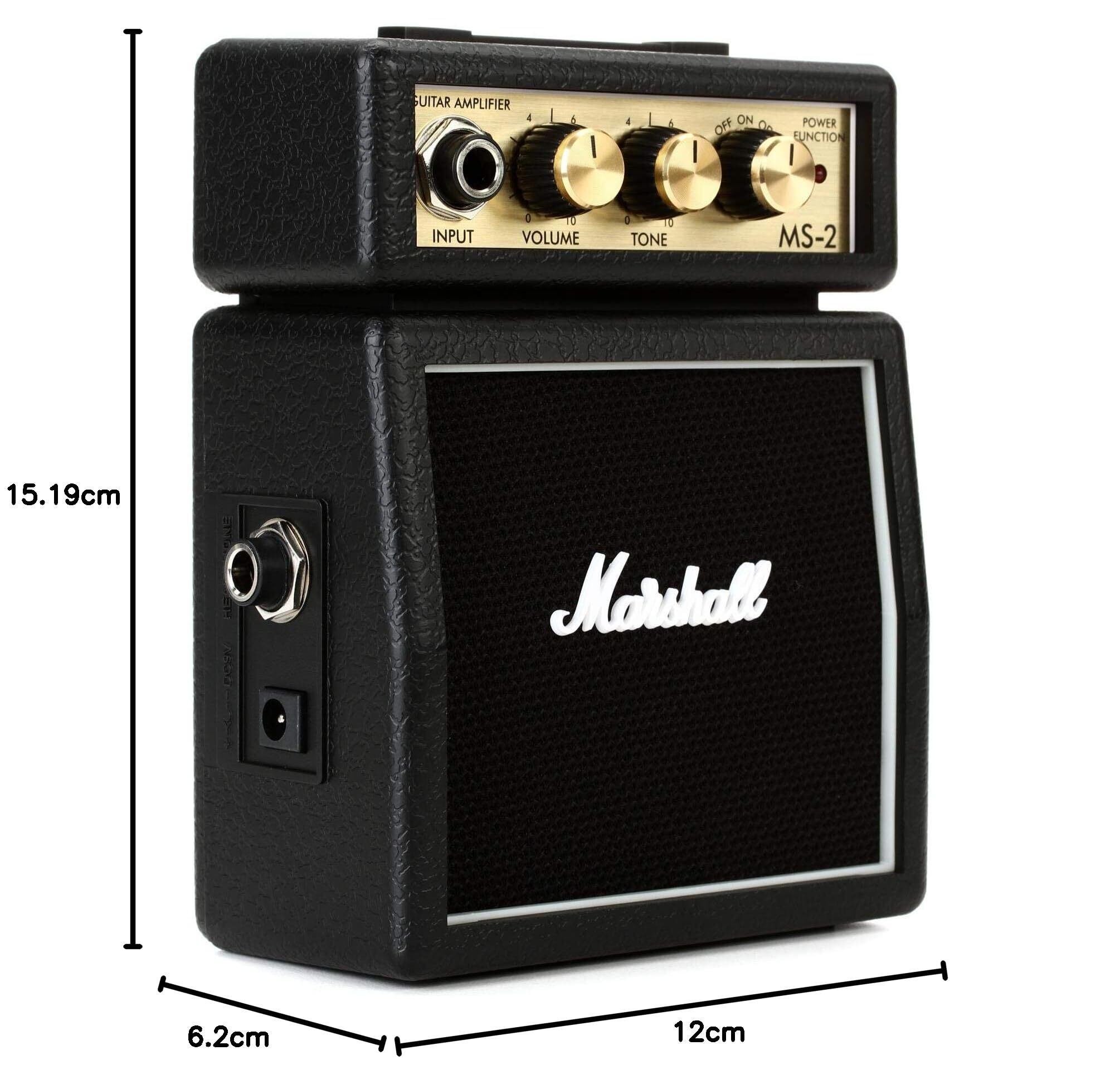 MARSHALL MS-2 コンパクトなボディーにマーシャルスタックのデザインを踏襲した伝統的なルックス。 もちろんマーシャルロゴも入っています。自宅でのプレイやインテリアとしてもどうぞ。 サイズを超えたラウドなオーバードライブトーンも堪能できます。 出力 2W 外形寸法 110W×140H×60D(mm) ヘッドホンアウト端子付き 9V/DCアダプター&9V電池使用可能