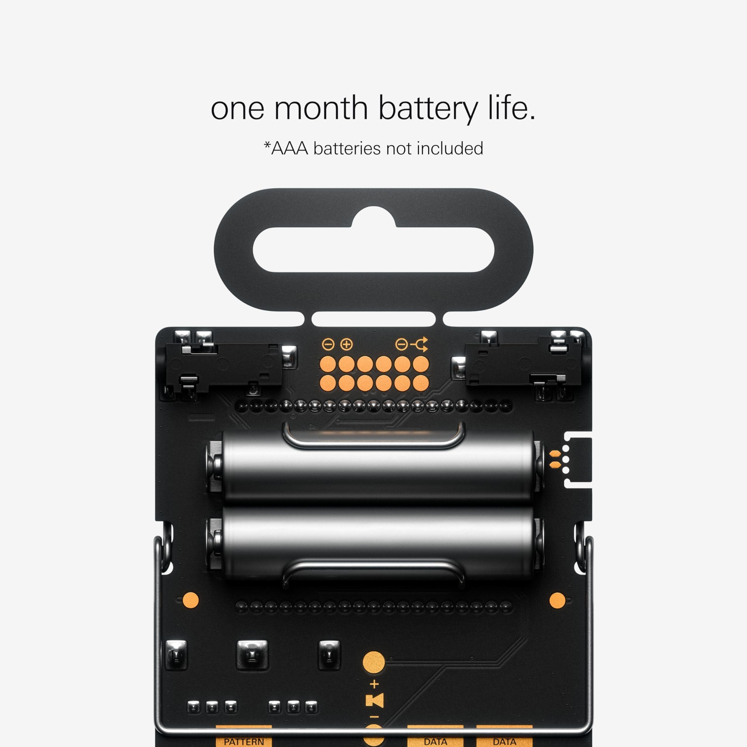 PO-32の内蔵マイクロフォンは、音声でデータを転送・受信することができます。さらに、本体のロック・タブを切り離すとパターンの書き込みを禁止することができます(元には戻せないのでご注意を! )。ハンガーの強度もさらに高め、頑丈になりました。本体裏側には便利なコンボ・キー解説図も追加されています。