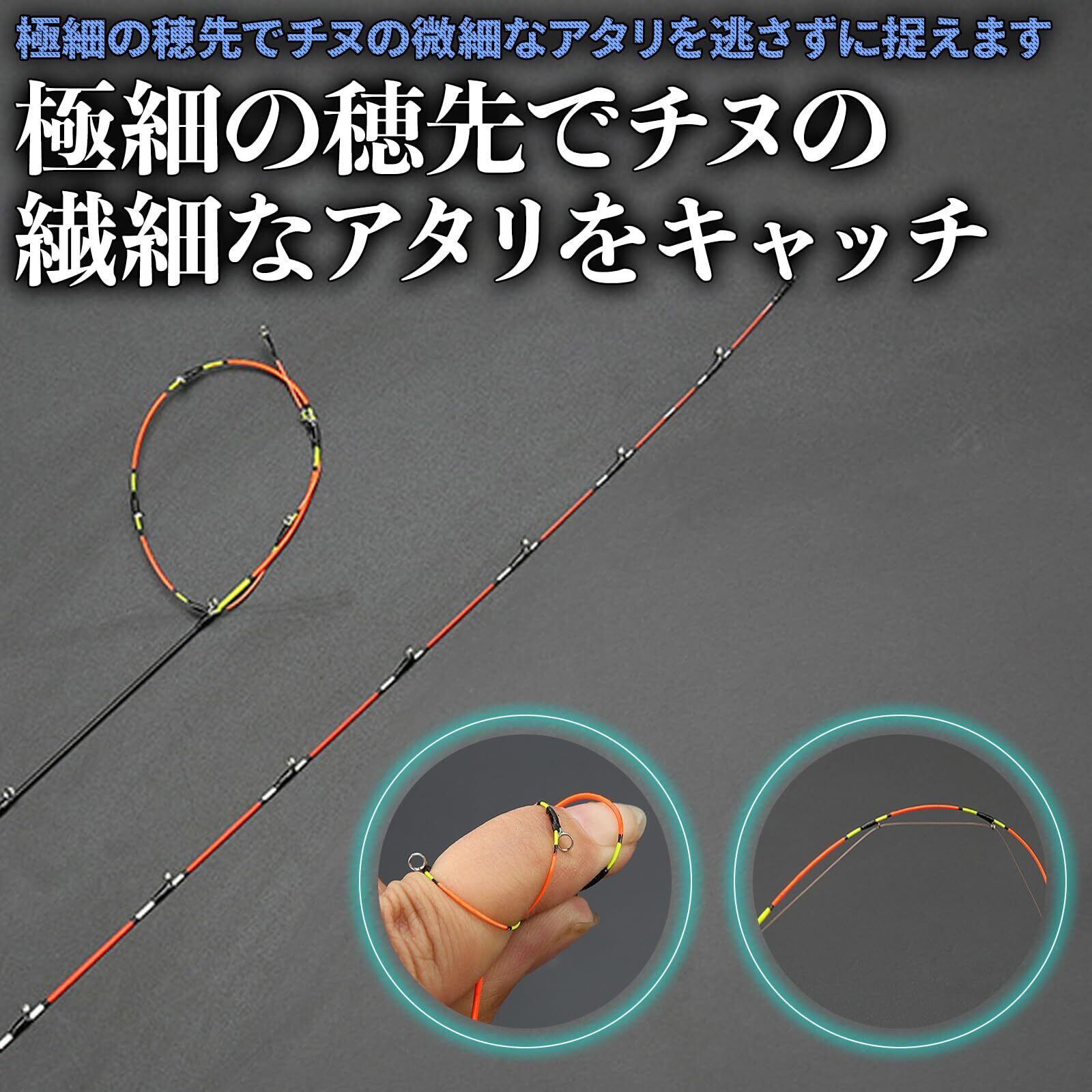 【極細0.3mmの極細穂先で小さなアタリも逃さない】チヌ(黒鯛)釣りで定番の、ウキ釣り、落とし込み釣り、ヘチ釣り、高さのある筏(イカダ)やカセからの釣法で活躍する極細穂先のハーフチタンロッドです。約0.3mmの繊細な穂先で小さなアタリを読み取る面白さが多くの釣り人を魅了しています。