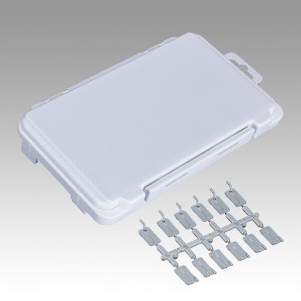 両面スリットフォームに専用パーツを付属したタイラバフック特化型収納ケース。スリットに専用パーツを差し込むだけの簡単セッティング。専用パーツにアシストラインを引っかけ、残ったフックはスリットに差し込みます。スッキリと整列させて収納できるので、ケース内で絡まったりせず、釣行中でもスムーズに交換が可能です。