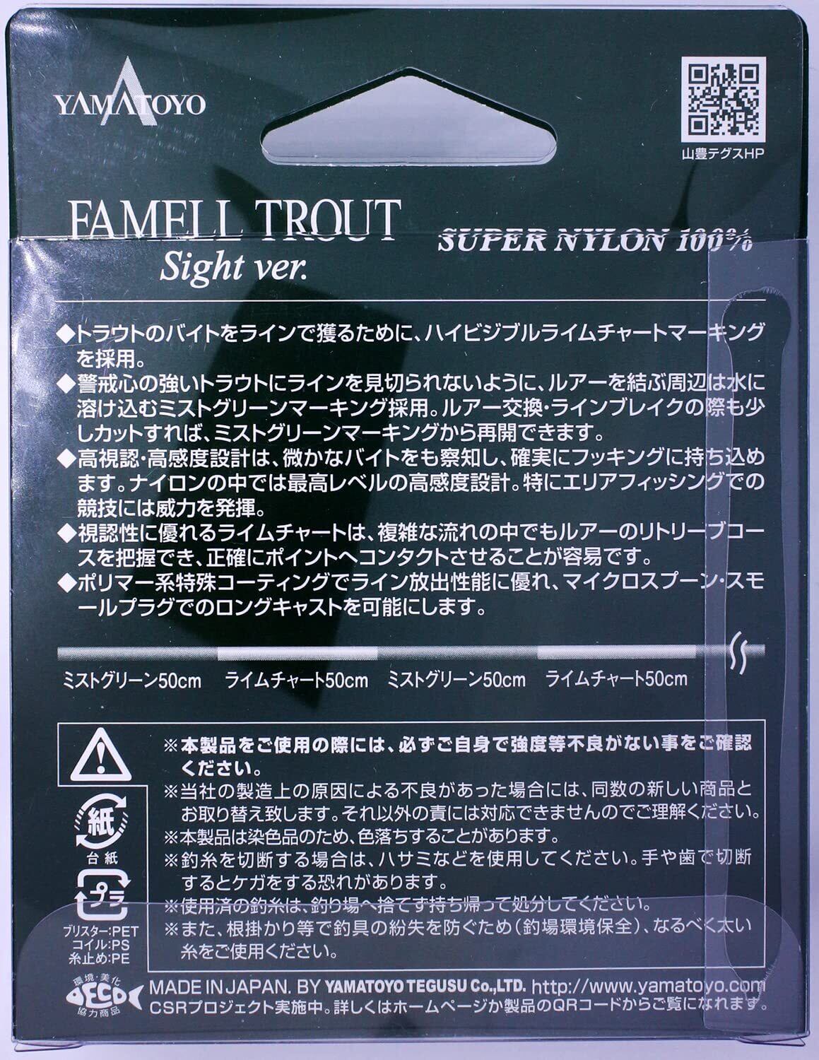 ヤマトヨテグス(Yamatoyo) ファメルトラウト サイトバージョン 100m ミストグリーン&ライムチャート