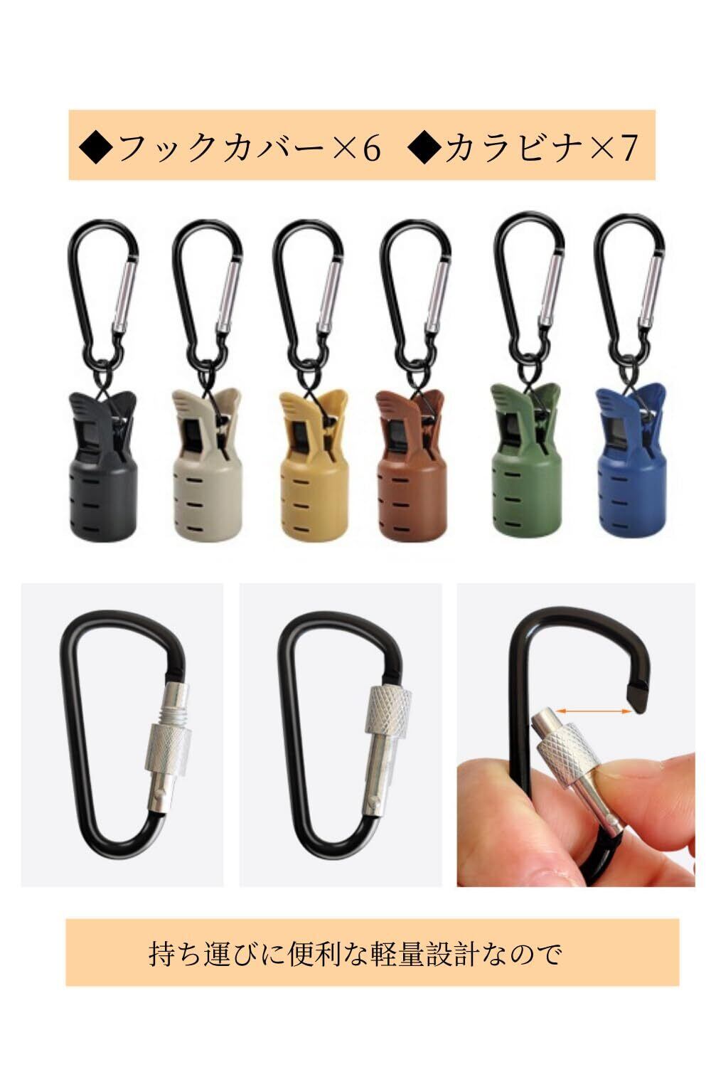 【セット内容】フックカバー×6、カラビナ×7、シリコンバックル×1。フックカバーサイズ:53㎜×25㎜ 。