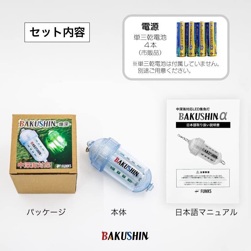 FUNKS BAKUSHIN 強力 電池式 集魚灯 爆深 グリーン 緑 イカ釣り 高輝度 集魚ライト 明るい 水中ライト