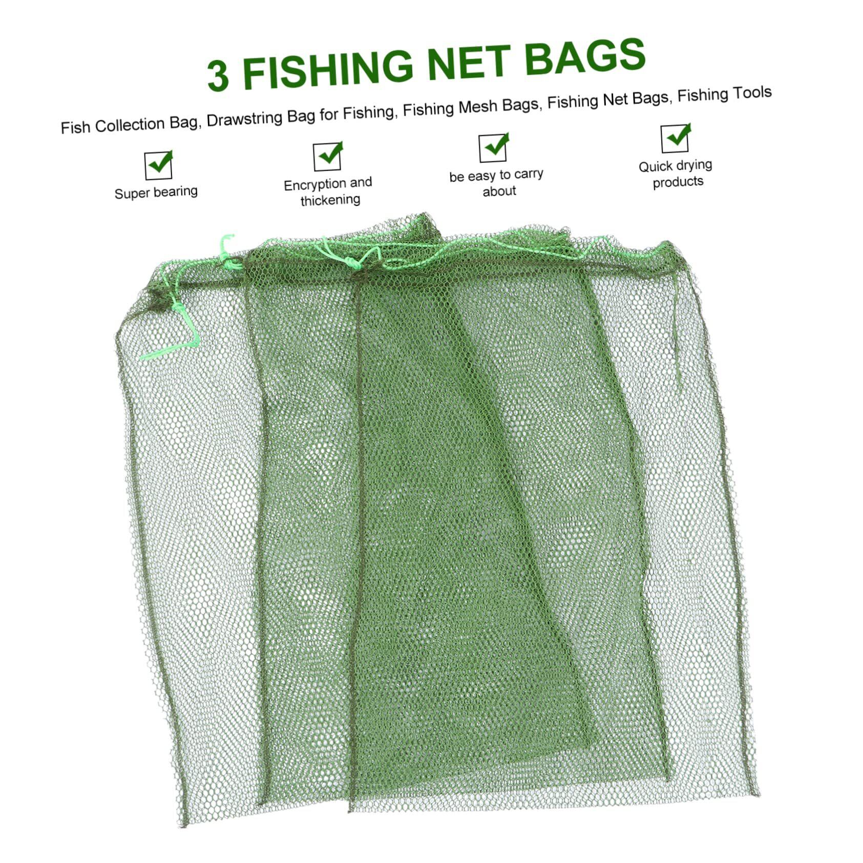 LIOOBO 魚 袋 貝 容器 釣り 網 海水用 コンパクト 消耗品 小型 コレクション ポーチ 折りたたみ 釣り具 ゴム引き 布 軽量 バスケット 魚介類 ボイル フィッシング キャンプ アウトドア 3個