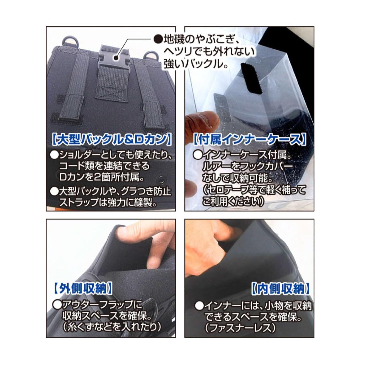 オーナー(OWNER) 撃投マルチ機動バック No.8995 ブラック!!磯を機動的に!あらゆる動作を迅速に!ライフジャケット等にセットして使用できます。【大型バックル&Dカン】ショルダーとしても使えたり、コード類を連結できるDカンを2箇所付属。【付属インナーケース】インナーケース付属。ルアーをフックカバーなしで収納可能。(セロテープ等で軽く補ってご利用ください。)【外側収納】アウターフラップに収納スペースを確保。(糸くずを入れたり)【内側収納】インナーには小物を収納できるスペースを確保。(ファスナーレス)