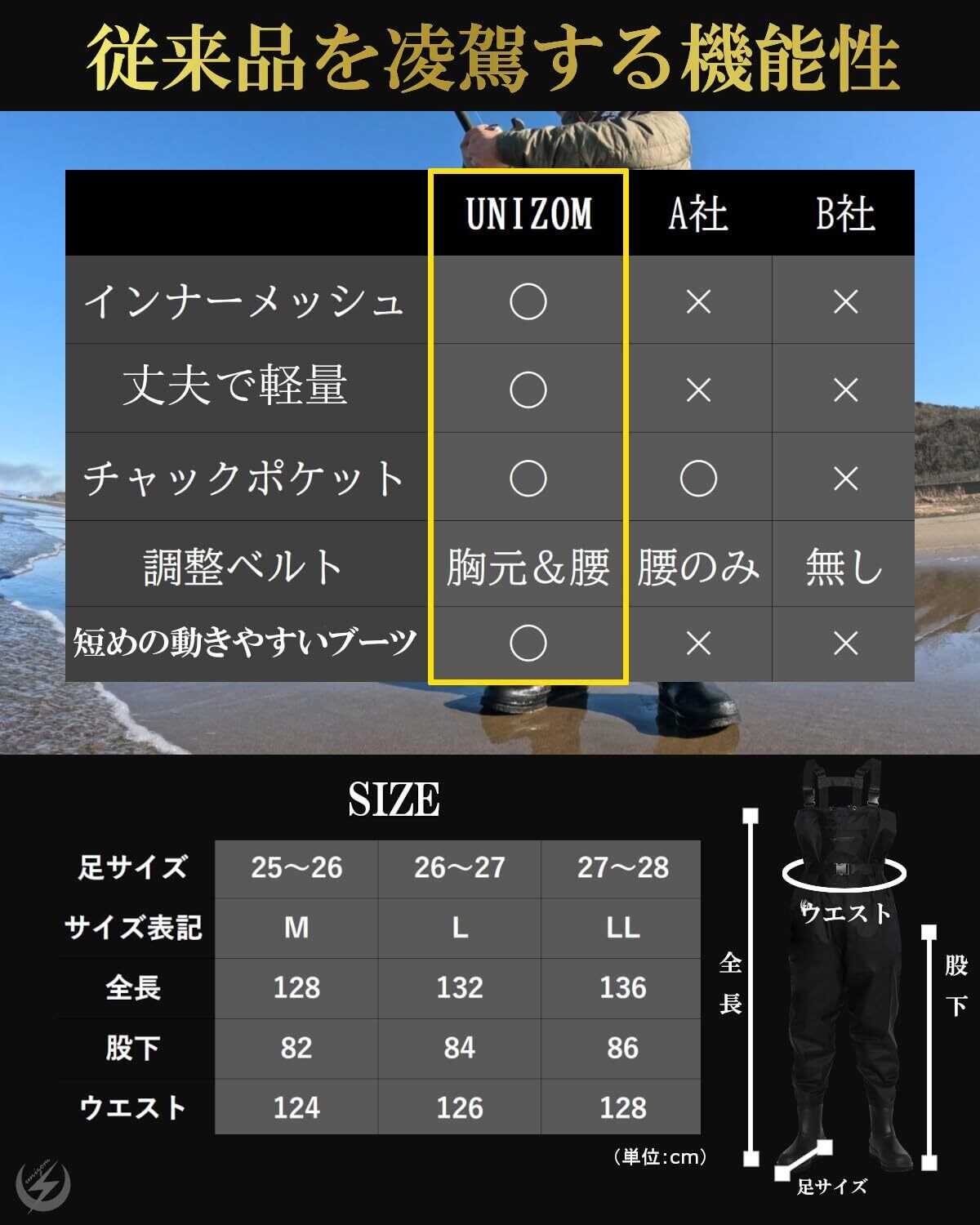 [unizom] ウェーダー 釣り フェルトスパイク 胴長 【インナーメッシュ搭載】【ベテランアングラー推奨】 完全防水 丈夫 チェストハイ フィッシングウェーダー