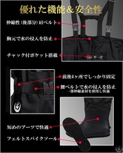 【丈夫で優れた防水性】生地を新型ナイロンおよびPVCコーティングで仕上げ、耐水性が高く、さらにとても丈夫で動きやすく快適です。裏側もしっかり補強してあり安心
