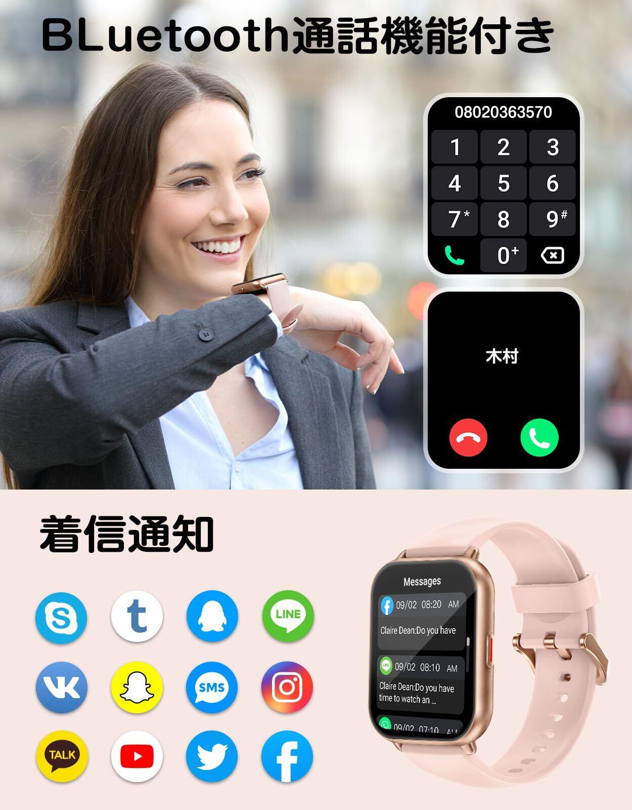 【Bluetooth通話機能付き&着信通知】スピーカーと高性能マイクを内蔵し、スマホを取り出すことなく通話ができるスマートウォッチで、毎日の仕事や生活、ドライブに大きな利便性を提供します。専用アプリと接続すると、スマートウォッチから直接電話をかけたり、応答したり、スピーカー機能をオンにしたりできるほか、通話履歴の確認や通話履歴の保存も可能です。 通話相手の名前と電話番号が時計に表示されます。また、smart watchには音声アシスタント機能が搭載されています。 さらに、LINEやFacebook、Twitterなどの通知もお知らせしてくれるので、大切なメッセージを見逃すこともありません。通知の振動の強さは、時計側で設定できます。