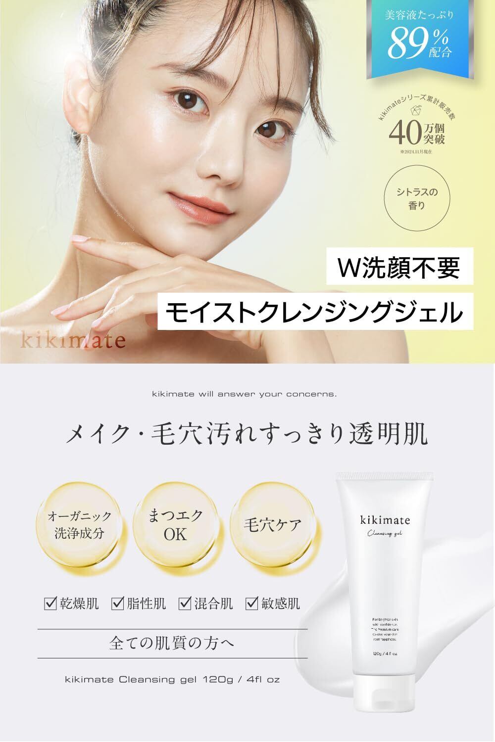 kikimate クレンジングジェル メイク落とし クレンジングフォーム【W洗顔不要 まつエクOK】 毛穴汚れ 黒ずみ用 敏感肌 乾燥肌 オイルフリー 無添加 オーガニック 保湿 120g ギフト プレゼント キキメイト