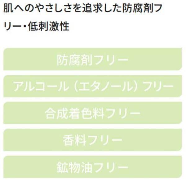 5つの(防腐剤、アルコール、着色料、香料、鉱物油)フリー