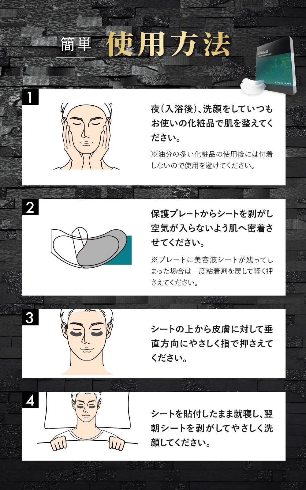 【 ニードルパッチ 男性用 】 メンズ ヒアルロン酸 パッチ 目元ケア 目元パック ヒアロケアパッチ TOOMO (3回分 6枚入り)