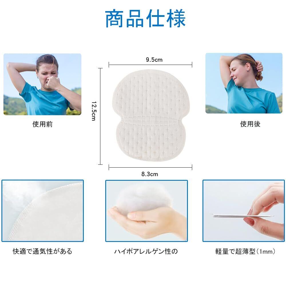 最新技術を採用し、特殊な素材が脇の下の汗を瞬時に吸収し、衣類の汚れを防止します。一日中清潔で快適な着用感を提供します。
