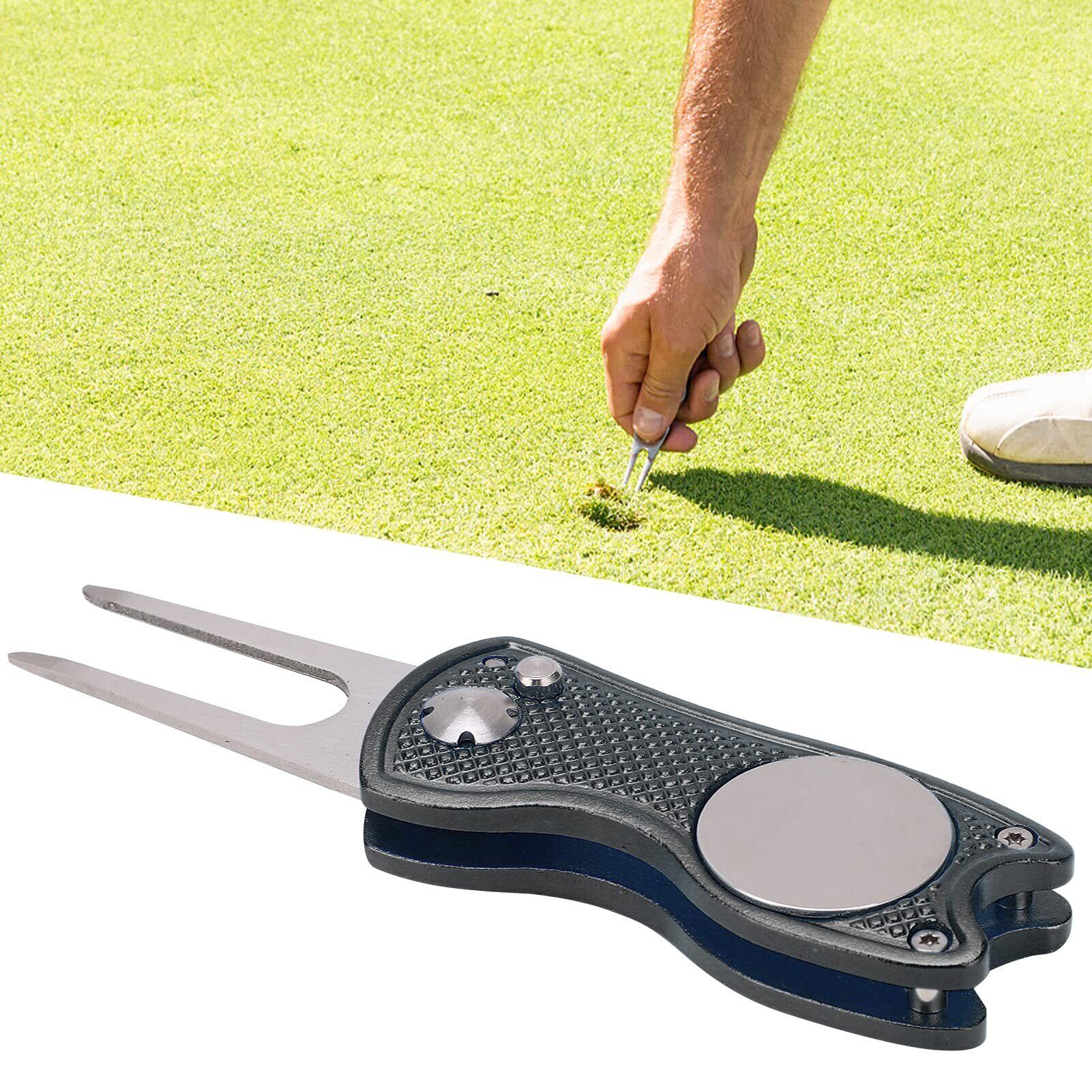 ゴルファーグリーンフォーク、ステンレス鋼ゴルファーフォーク金属折りたたみゴルファーディボットパッティンググリーンフォークディボット修理ツール