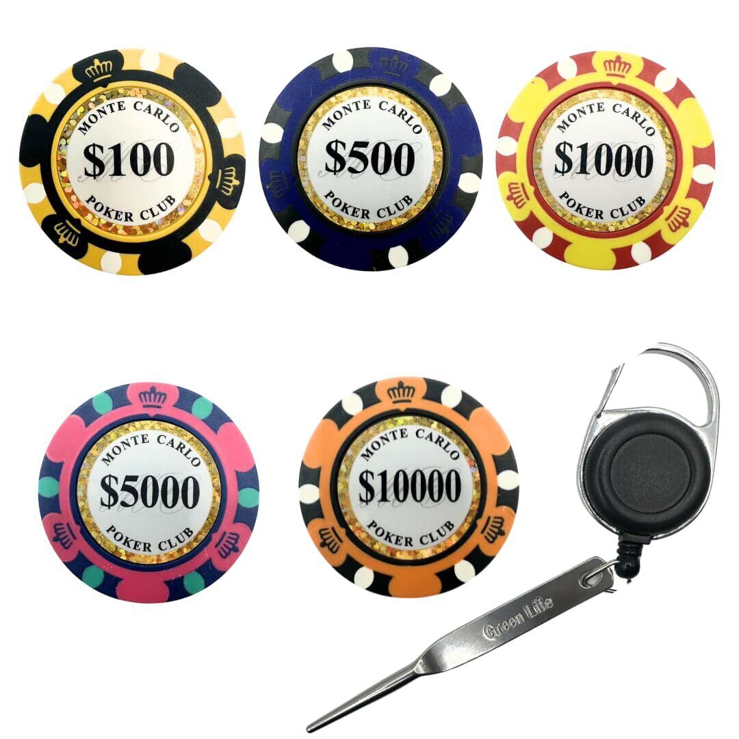 【抜群のデザイン】大きくて目立つ、高級感のあるセラミック製 ゴルフカジノデザインマーカー、カラー・デザインも豊富で、気分でチョイスできる