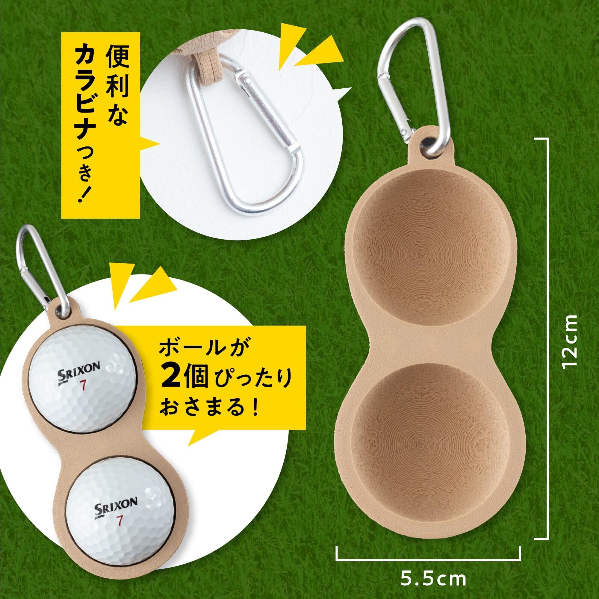 【PRINTROOM公式】ゴルフボールケース ピーナッツ型 可愛い ゴルフ ポーチ ボールポーチ レディース メンズ 対応 2個収納 ゴルフボールホルダー カラビナ付き 軽量 PLA素材
