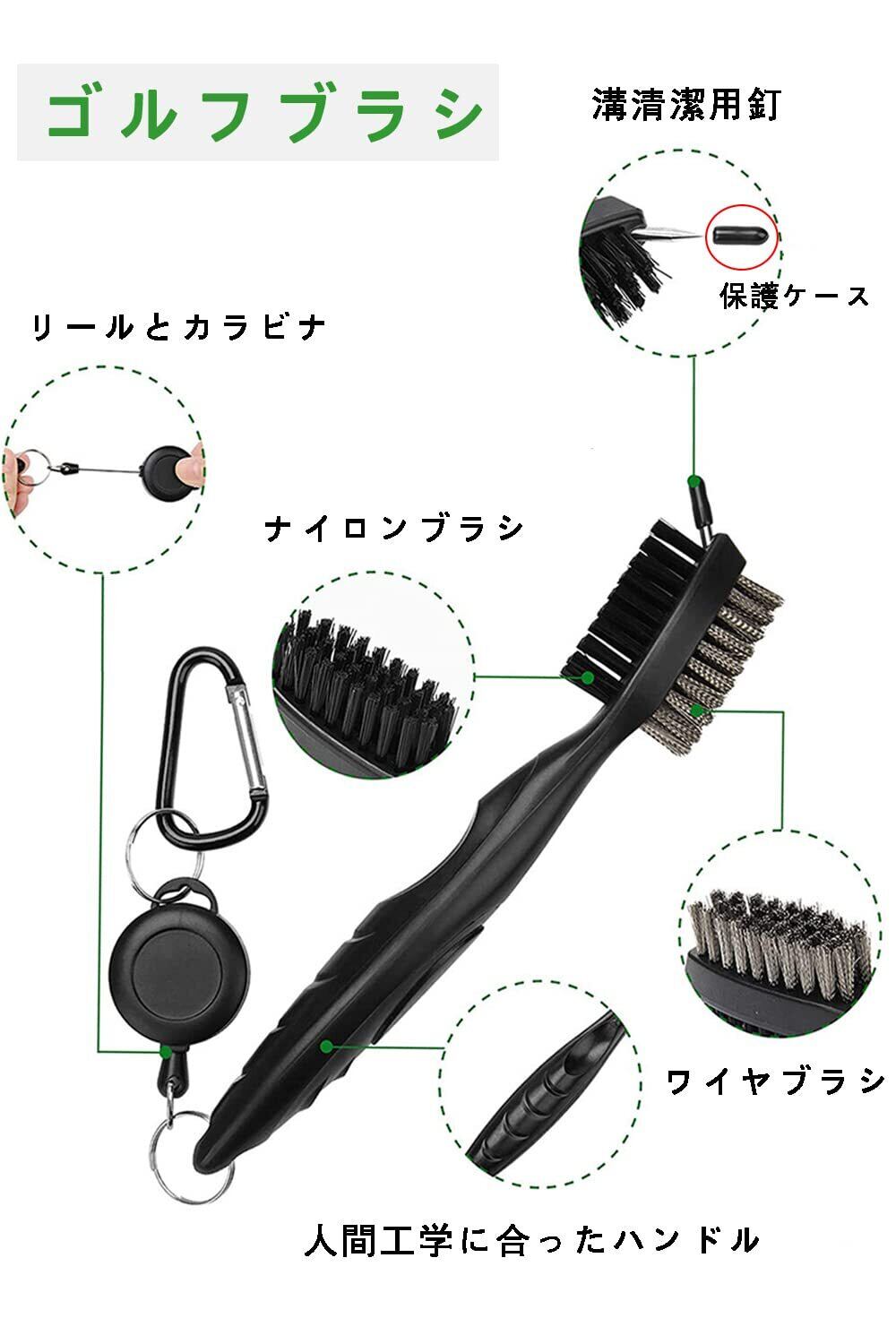 多機能両面ブラシ:ブラシはワイヤとナイロン両面のデザインを採用しています、耐久性があり、錆びにくいです。ゴルフブラシのヘッド部分は釘のような清潔ツールが付き、強力な清潔機能があります。