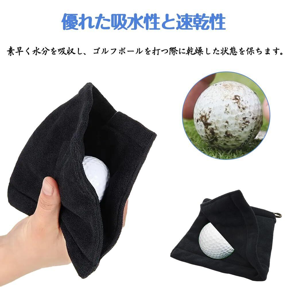 ゴルフ タオル ゴルフボールクリーナー カラビナ付き 便利 極細繊維 ボール拭き 清潔用 2個入り