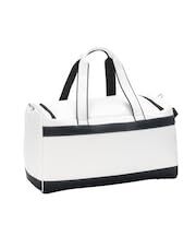 レザー調PU生地とエナメル生地を使用した高級感のあるモデル。ゴルフロッカーに立てた状態でも収納しやすいよう、側面ハンドル付き。本体外側に、ファスナーポケット2か所。開口部がコの字型になっており、出し入れしやすい設計。開口部裏側は視認性の良いメッシュ仕立てのファスナーポケット。本体内部に、ファスナーポケット、二つの仕切りポケット付き。取り外し可能なパット付きショルダーベルト付き。