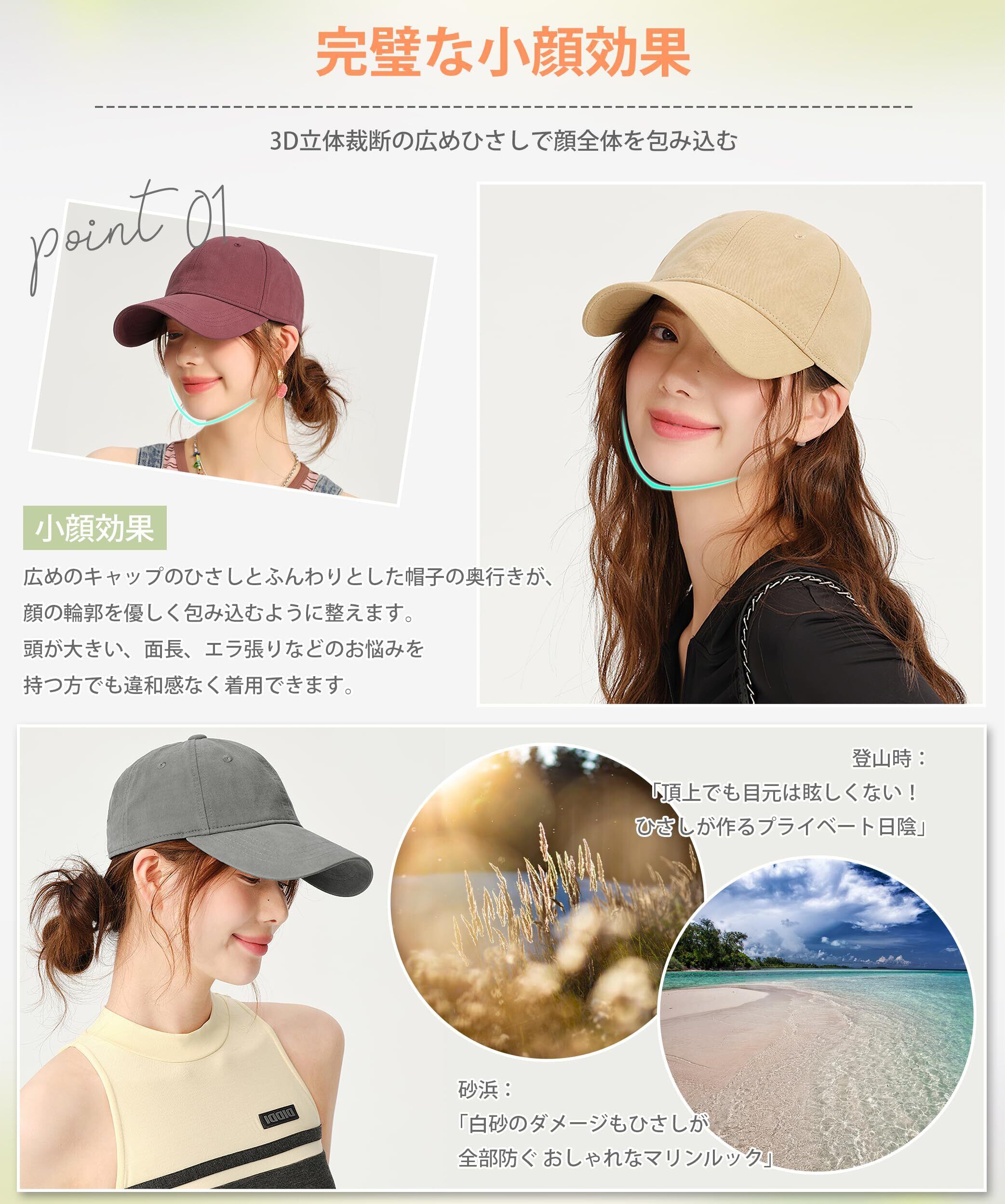 [MOWO] キャップ レディース 帽子 【国内専門機関認証済みUPF50+・パーフェクト小顔効果・ファッション感MAX】 日除け帽子 ランニング 紫外線対策 サイズ調整 深め 夏用 涼しい おしゃれ 無地 綿 スポーツ・ゴルフ・自転車・釣り・野球