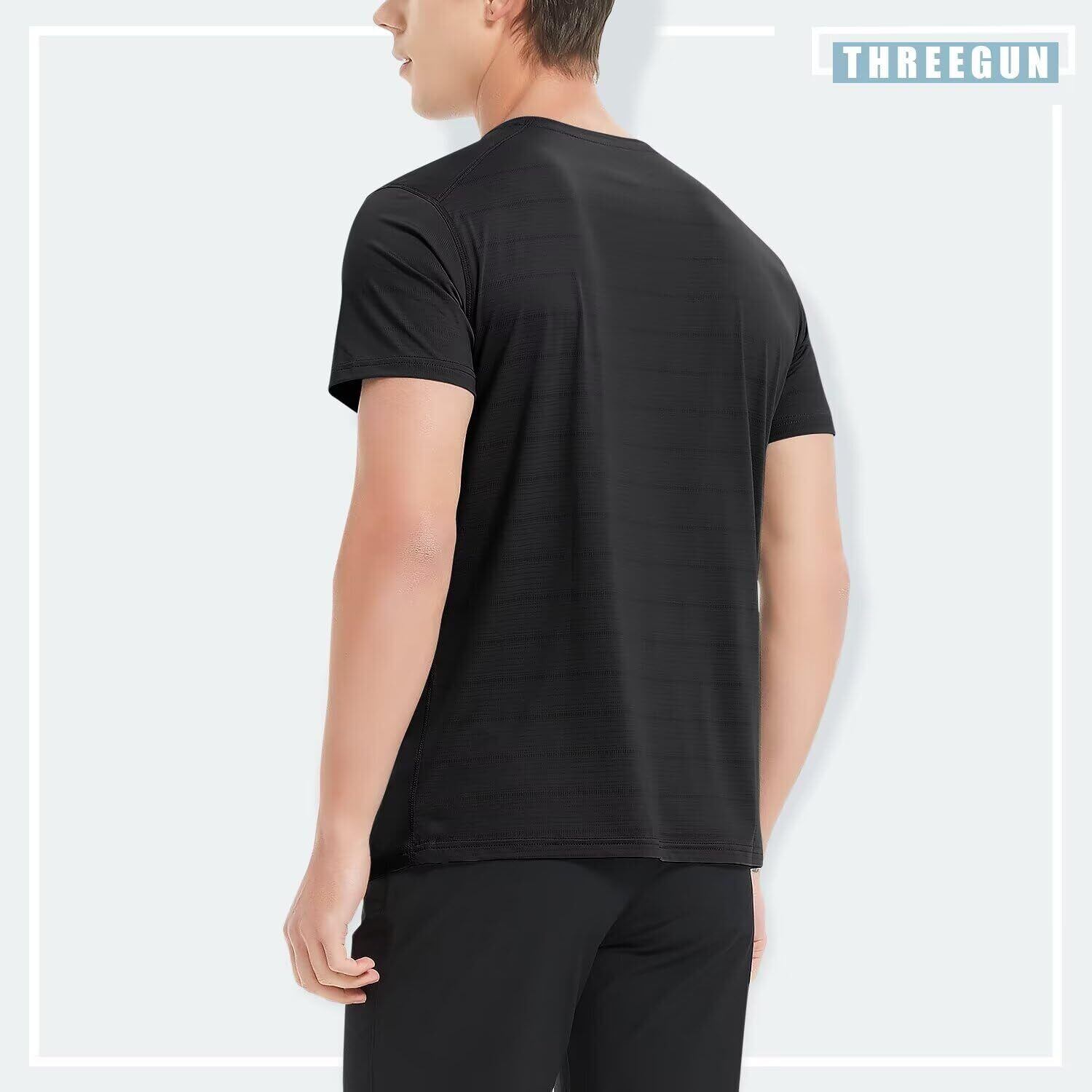 【THREEGUN冷感シャツ】高密度で涼しくて薄い素材に織られた生地は、滑らかで締まりがあり、変形しにくい。縦、横、斜めどんな方向にもよろしく伸びる。肌に触れた瞬間に涼しく、汗を吸い取り、通気性にも優れています。肌をドライに保ち、蒸れにくく、肌にやさしいソフトな仕上がりです。