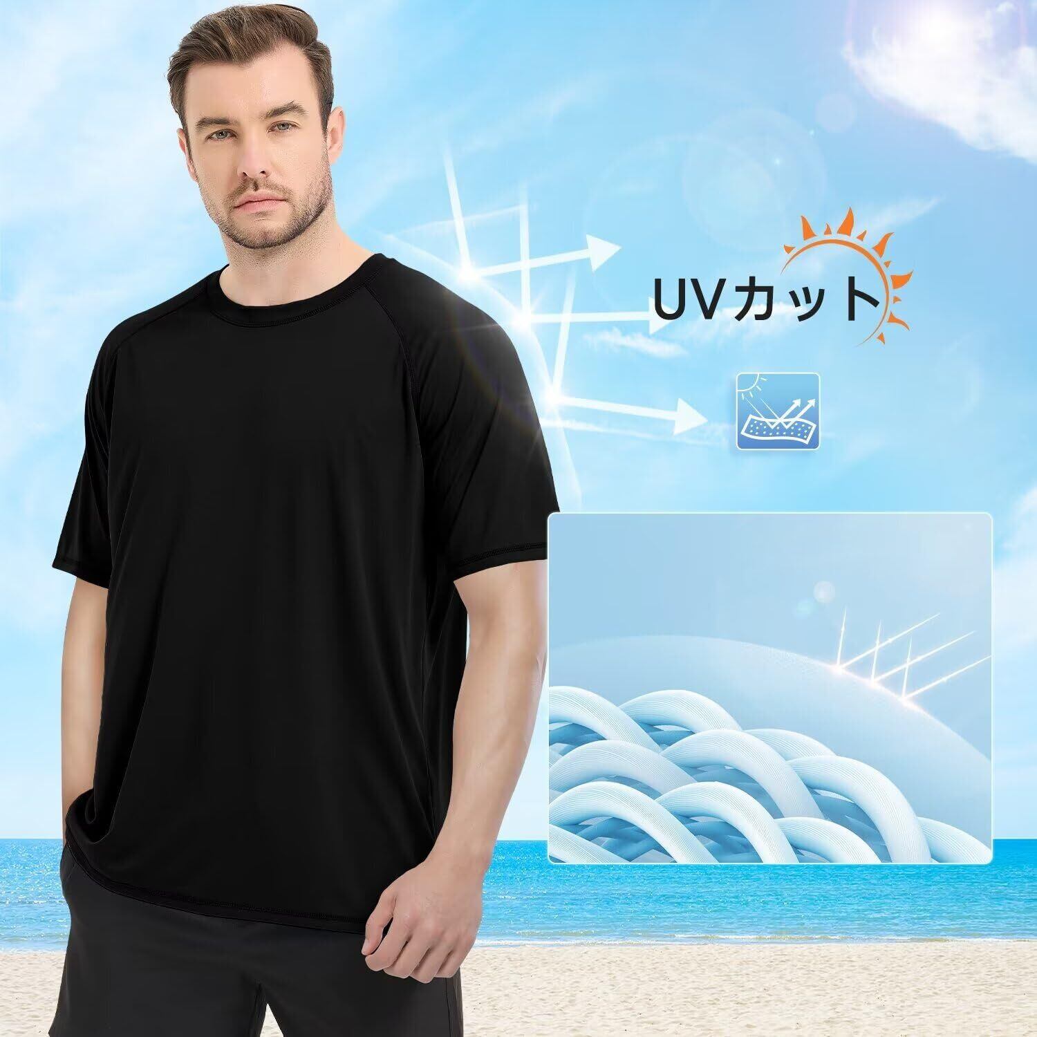 [Sillictor] ラッシュガード 半袖 メンズ ゆったり 冷感 ラッシュシャツ オーバーウェア 水着 大きいサイズ スポーツシャツ スイム tシャツ 夏 【通気速乾&UVカット】